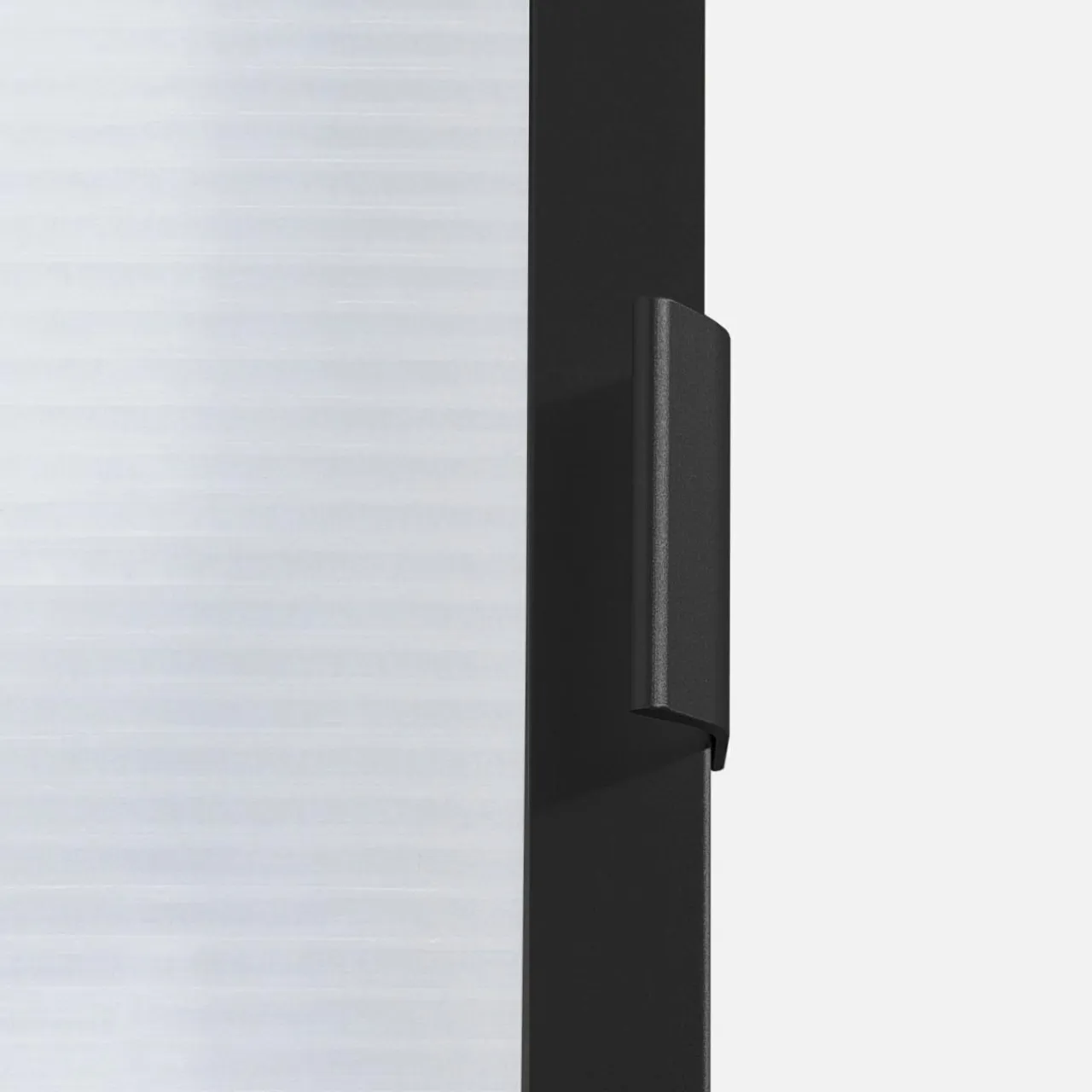 Ryflowana powierzchnia szkła hartowanego wprowadzi do wnętrza ciekawą grę światła i cienia. Czarna ramka frontu sprawdzi się w industrialnej aranżacji wnętrza.