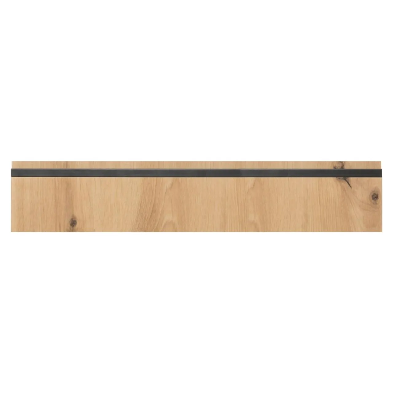 Dekor w kolorze drewna z doskonale widocznym usłojeniem sprawia, że front świetnie wygląda w połączeniu z jasnymi odcieniami bieli i szarości. Dodatkową zaletą jest uchwyt w formie frezu wykończonego czarną aluminiową listwą.