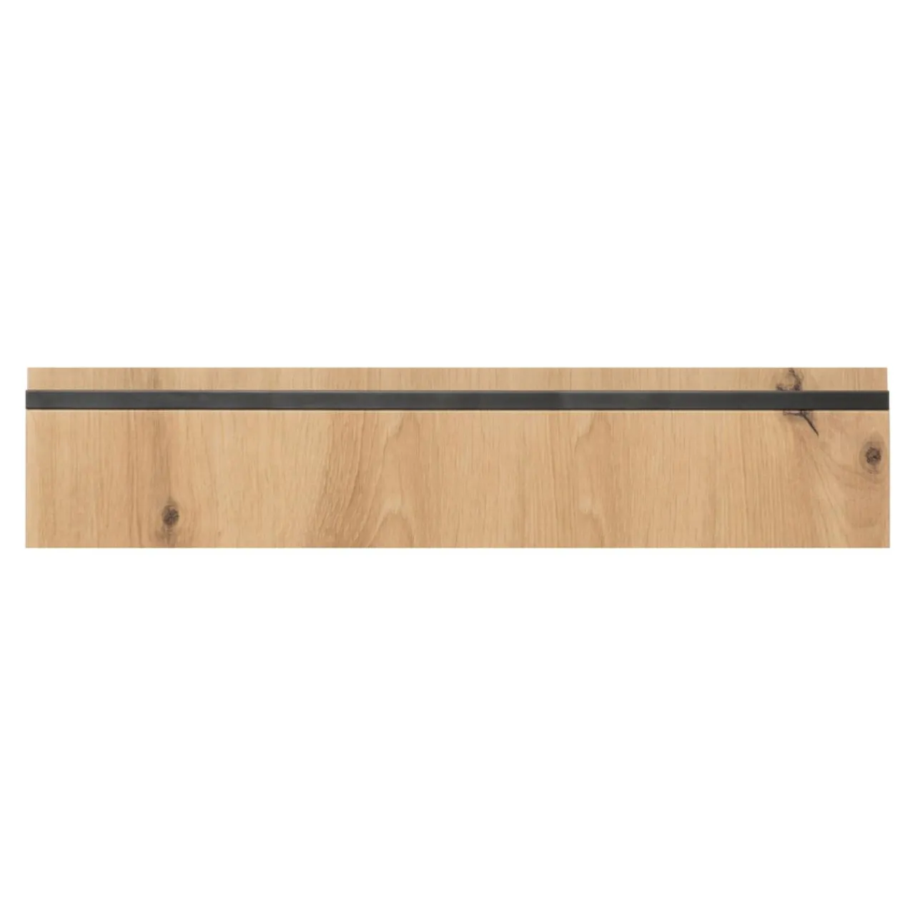 Dekor w kolorze drewna z doskonale widocznym usłojeniem sprawia, że front świetnie wygląda w połączeniu z jasnymi odcieniami bieli i szarości. Dodatkową zaletą jest uchwyt w formie frezu wykończonego czarną aluminiową listwą.