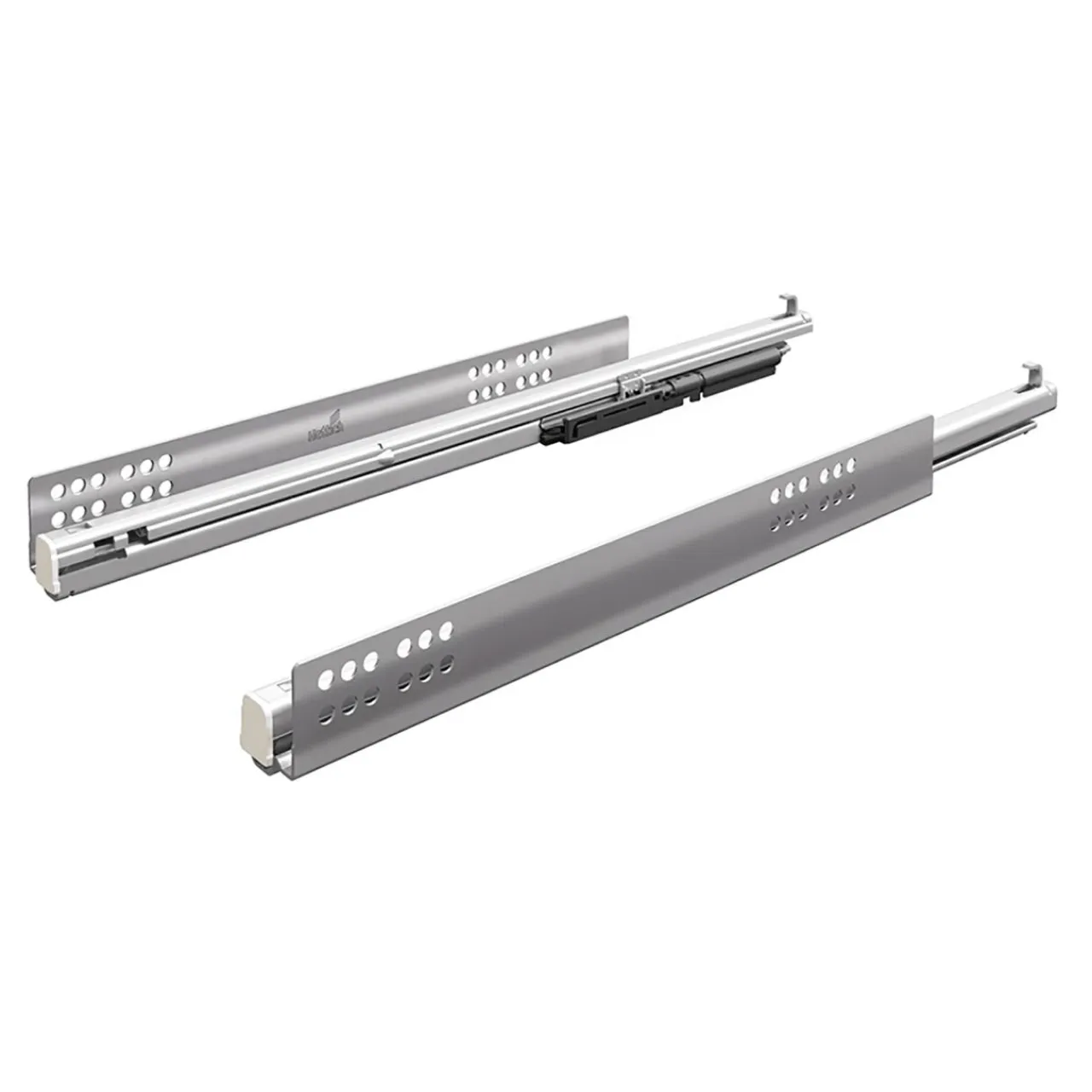 - Dodatkowo prowadnice cechuje estetyczny wygląd. Mocowanie, ukryte jest pod dnem szuflady i niewidoczne na pierwszy rzut oka.