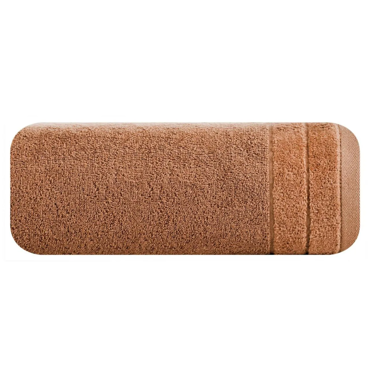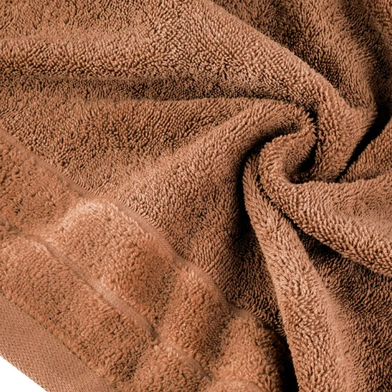 Ręcznik w ceglastym kolorze będzie ładnie się prezentował na tle czarnych ścian oraz brązu.