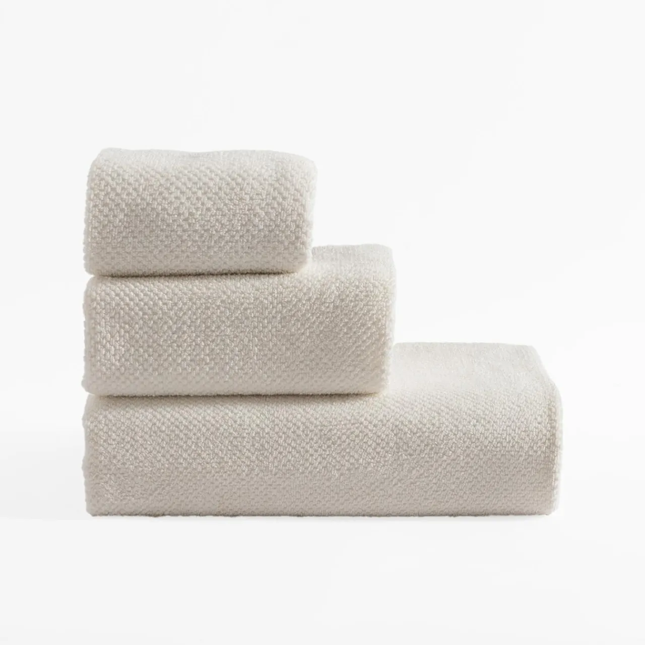 Bawełniany ręcznik BOVI o jednolitym kremowym odcieniu podkreśli aranżację w stylu minimalistycznym i skandynawskim.