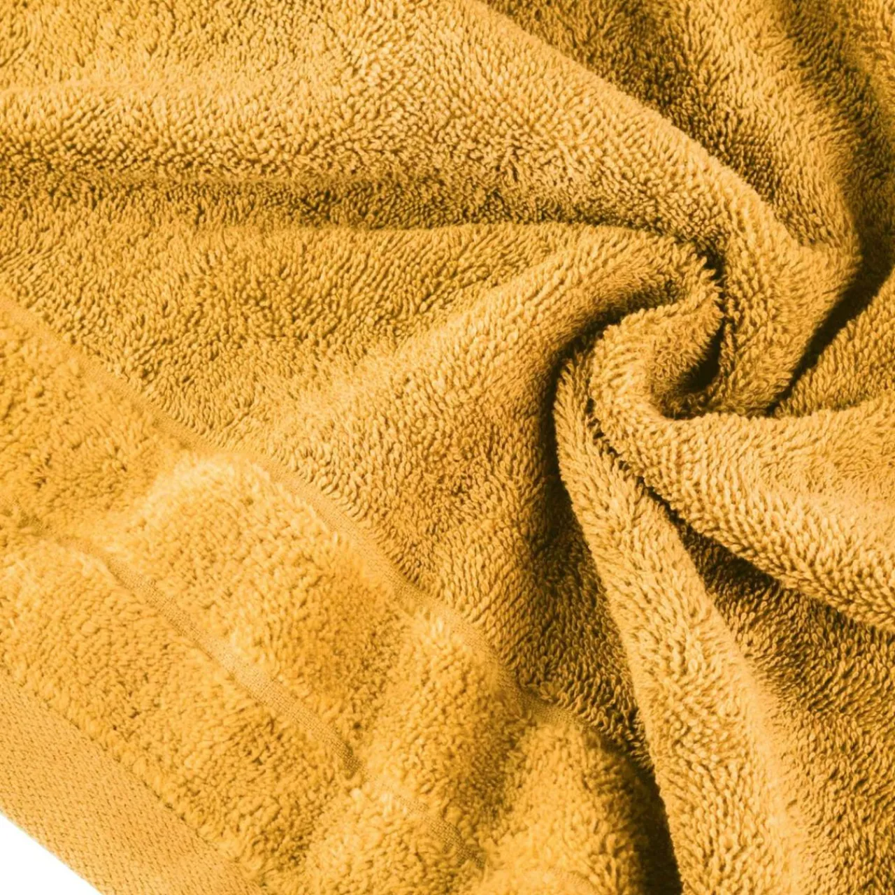 Musztardowy ręcznik będzie ładnie się prezentował na tle czarnych ścian oraz białych i szarych ścian.