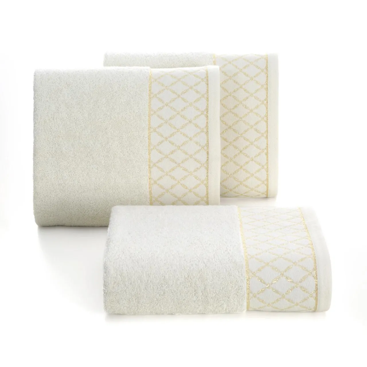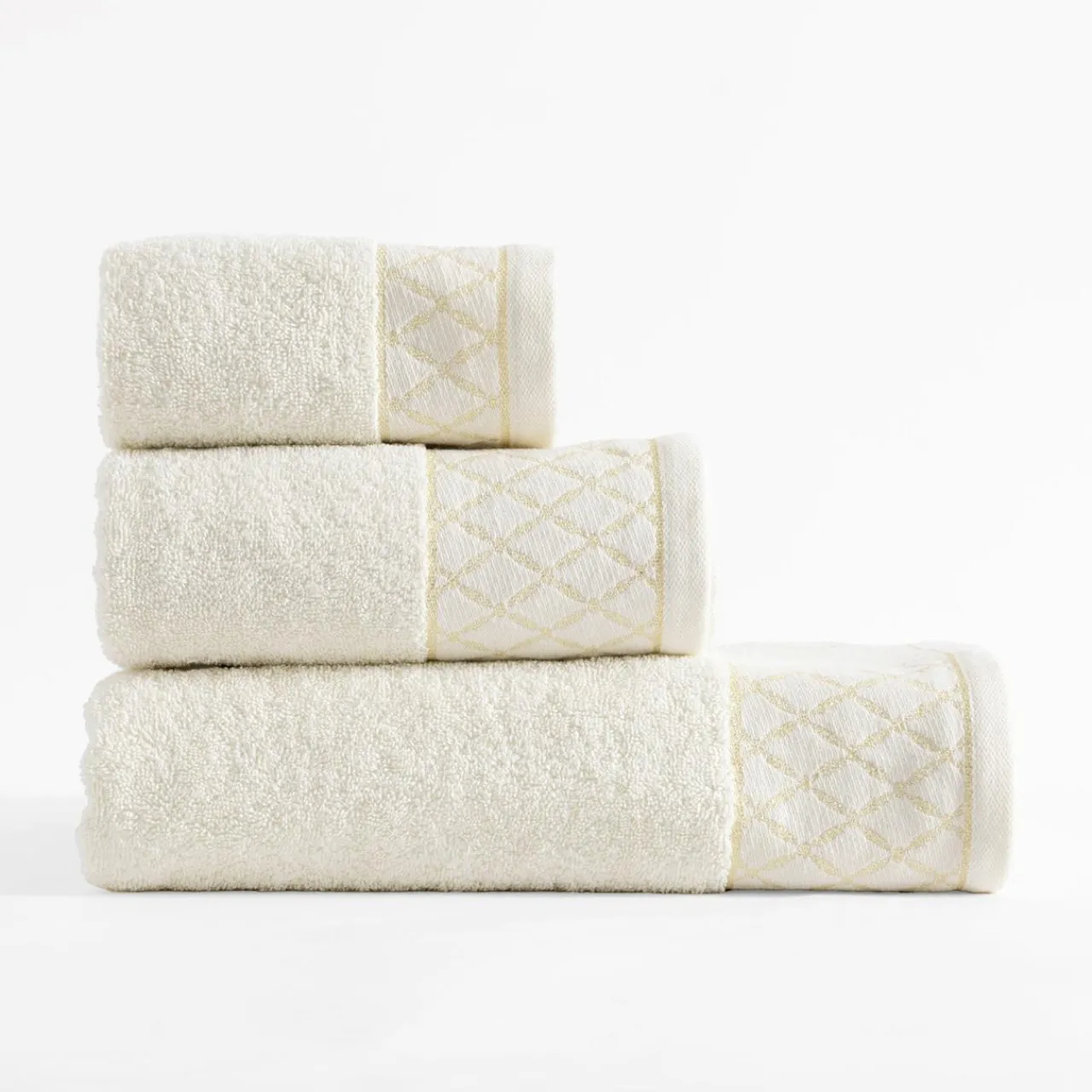 Udekoruj łazienkę kremowym ręcznikiem LAYLA ze złotą bordiurą. Podkreśli nowoczesny styl.