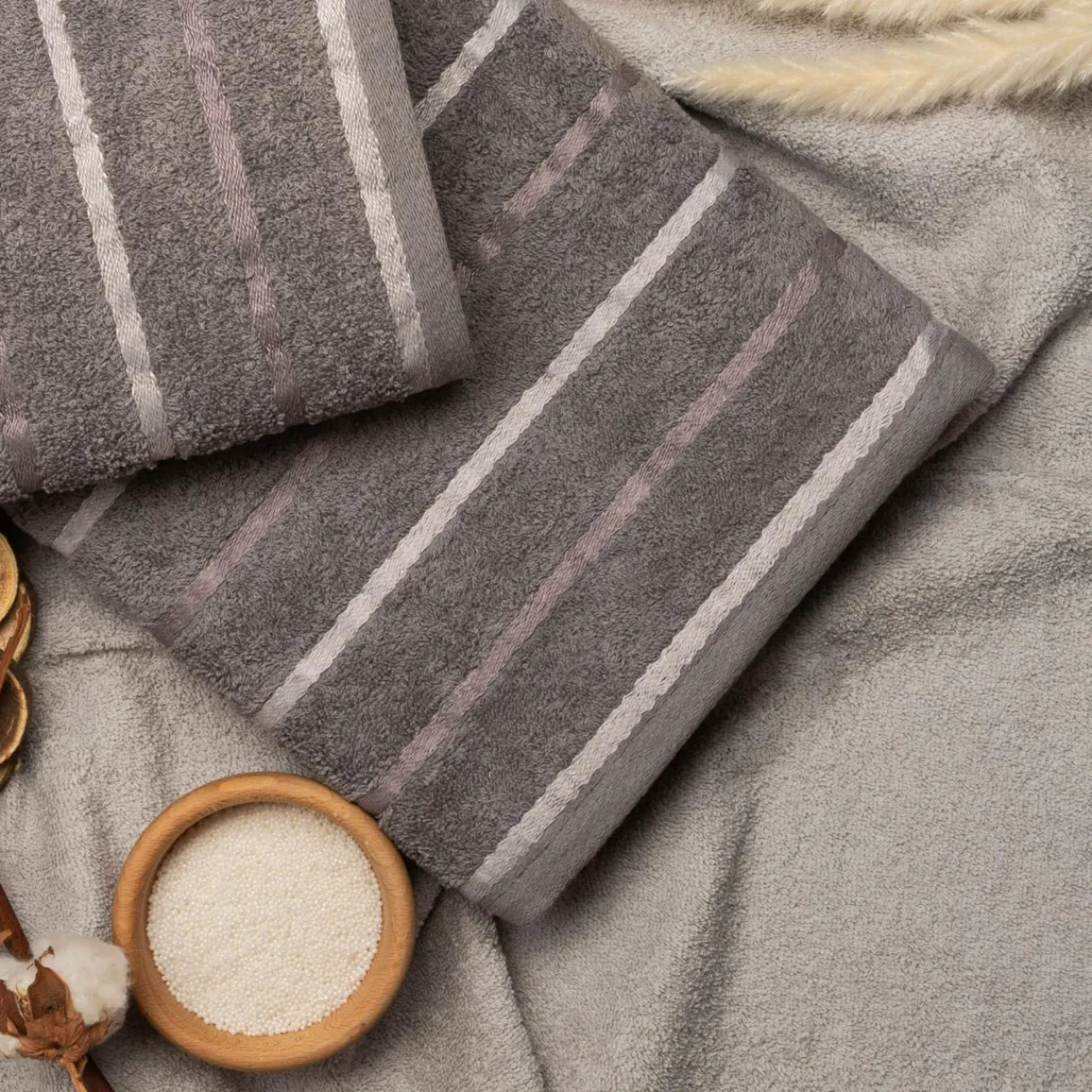 Szary ręcznik FRESH o wymiarach 70×140 cm dopasujesz do nowoczesnej aranżacji. Zharmonizuje przestrzeń.