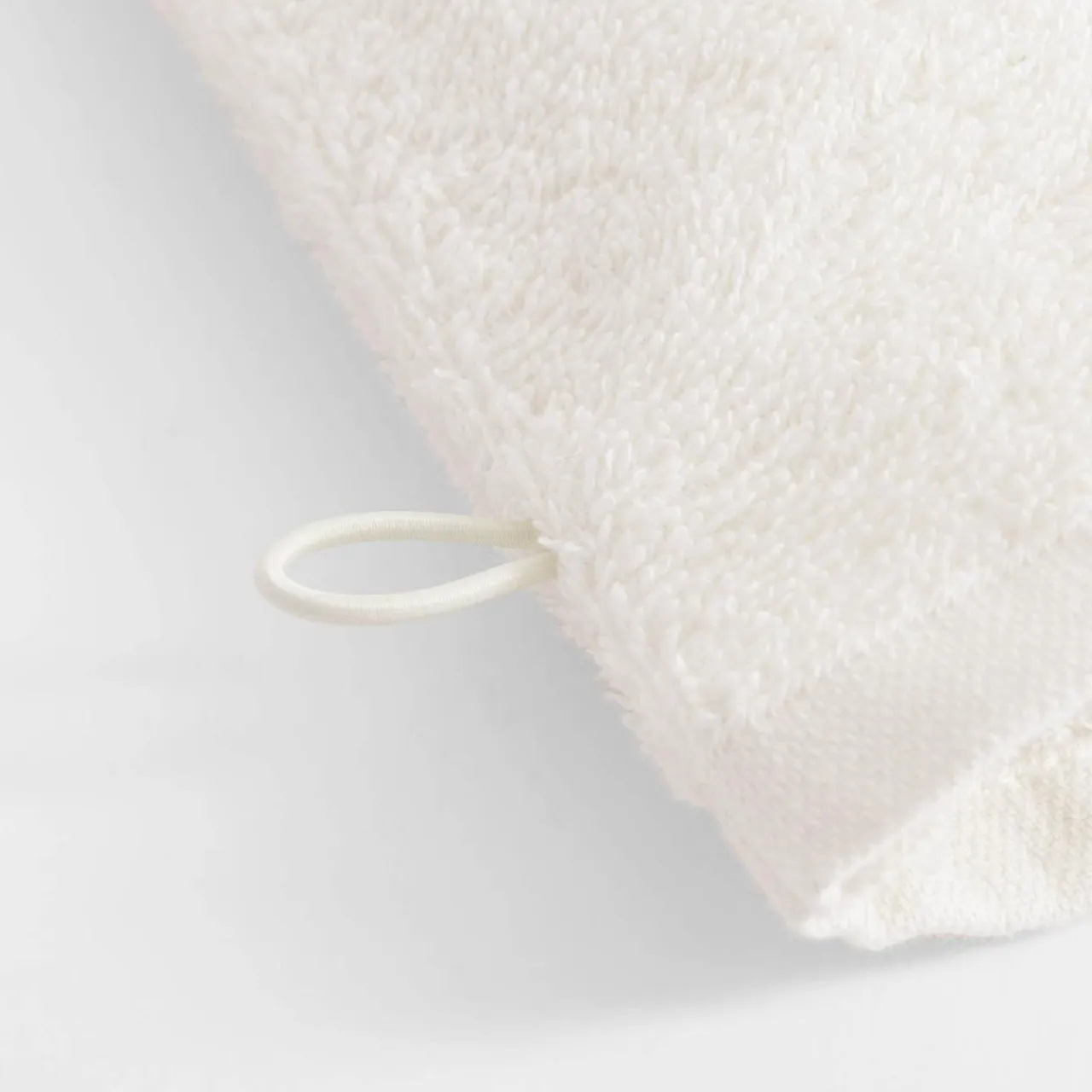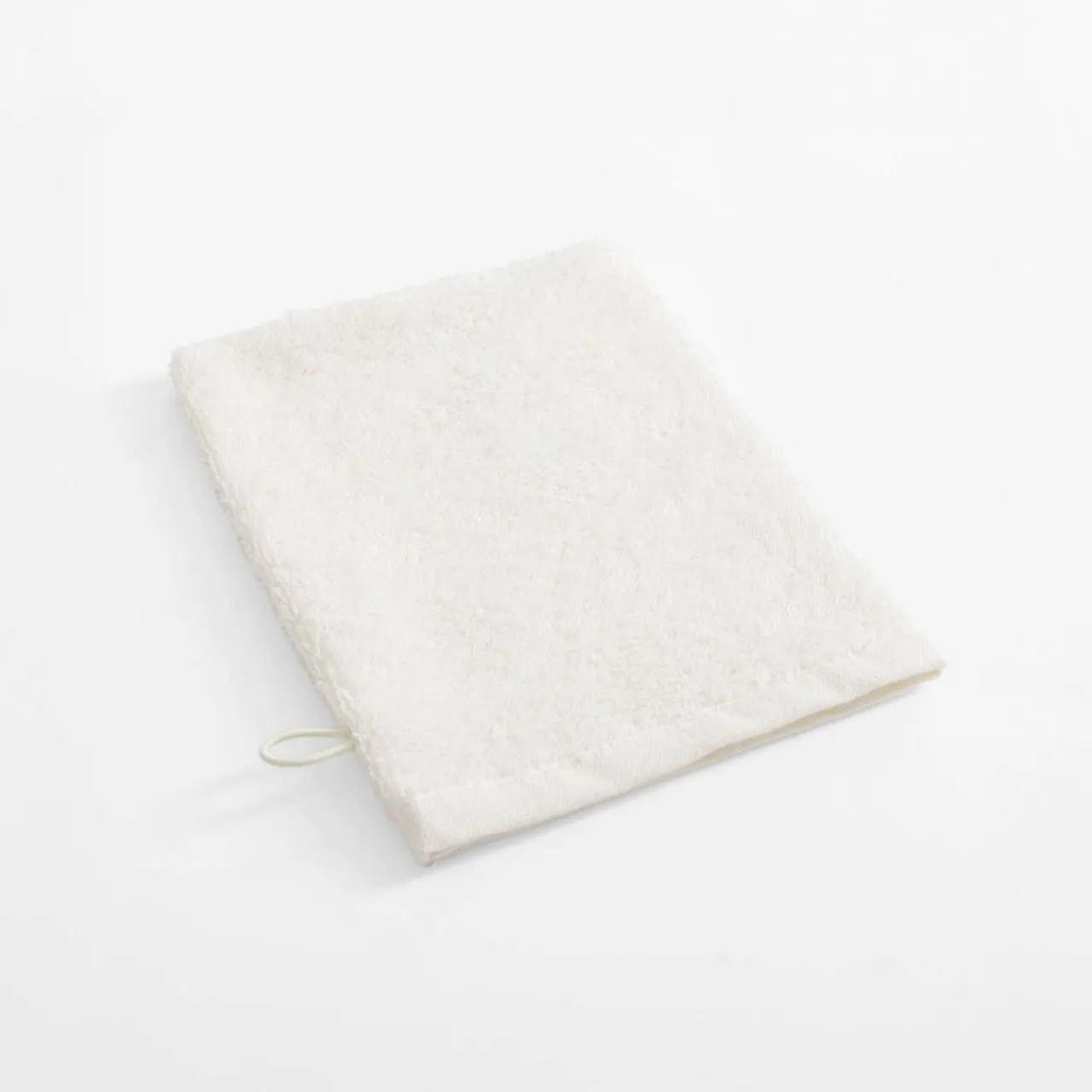 Kremowa myjka o wymiarach 16×21 cm przyda się do delikatnej codziennej pielęgnacji.