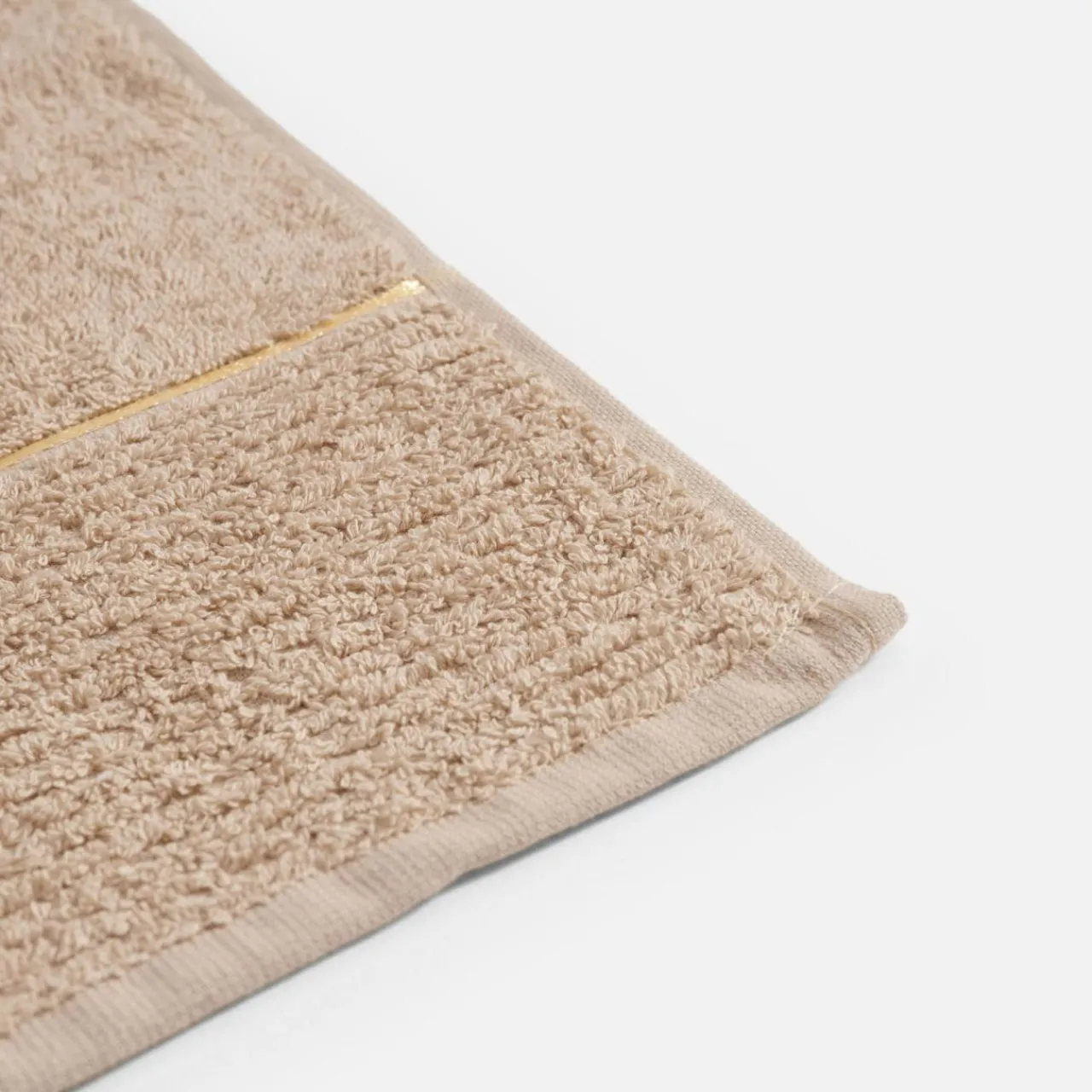 - Złota lamówka ręcznika sprawia, że złożony na półce stanowi prawdziwą ozdobę łazienki.