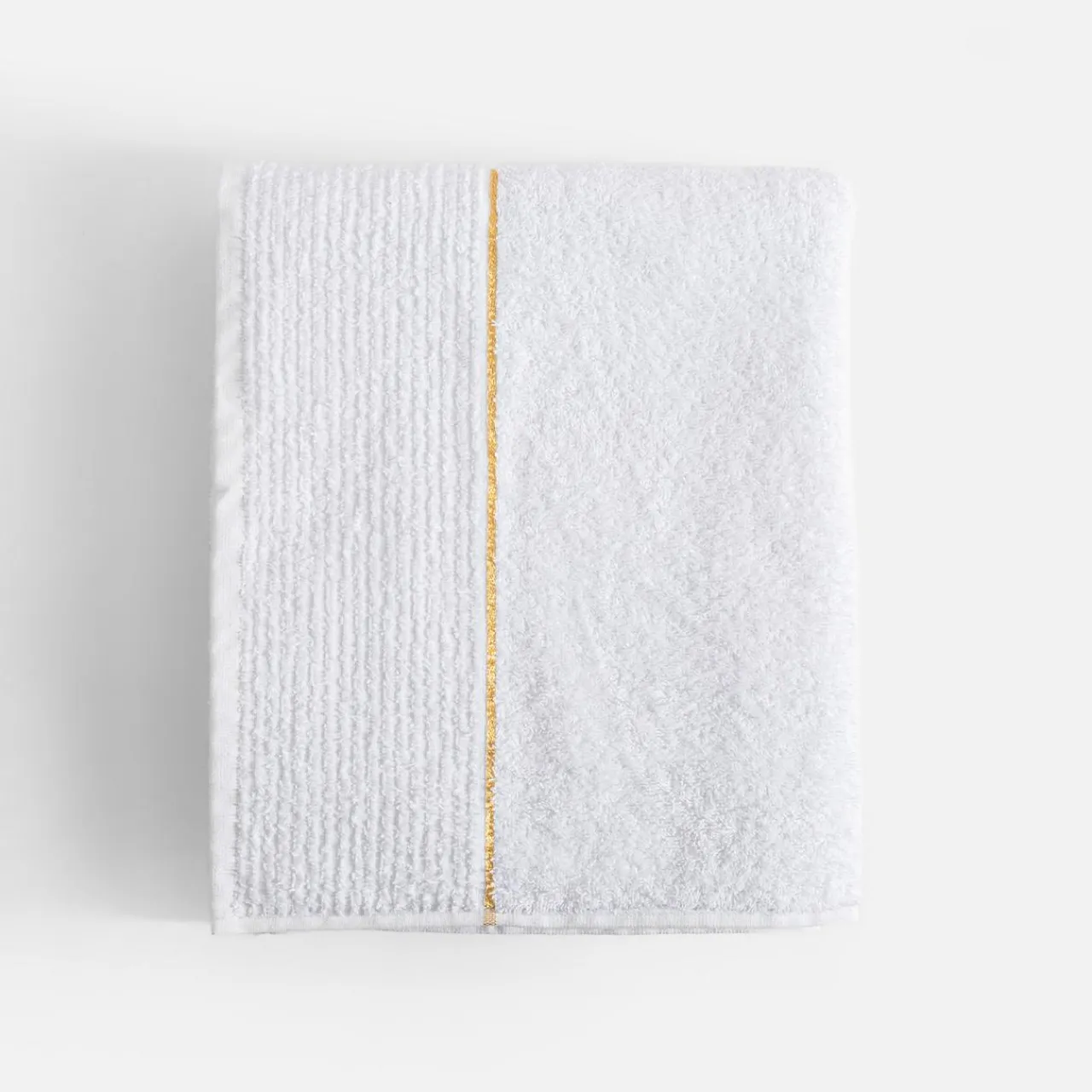 Ręcznik NEW GOLD o wymiarach 70×40 cm jest uszyty z naturalnego materiału – szybko wchłania wilgoć i sprawnie się suszy.