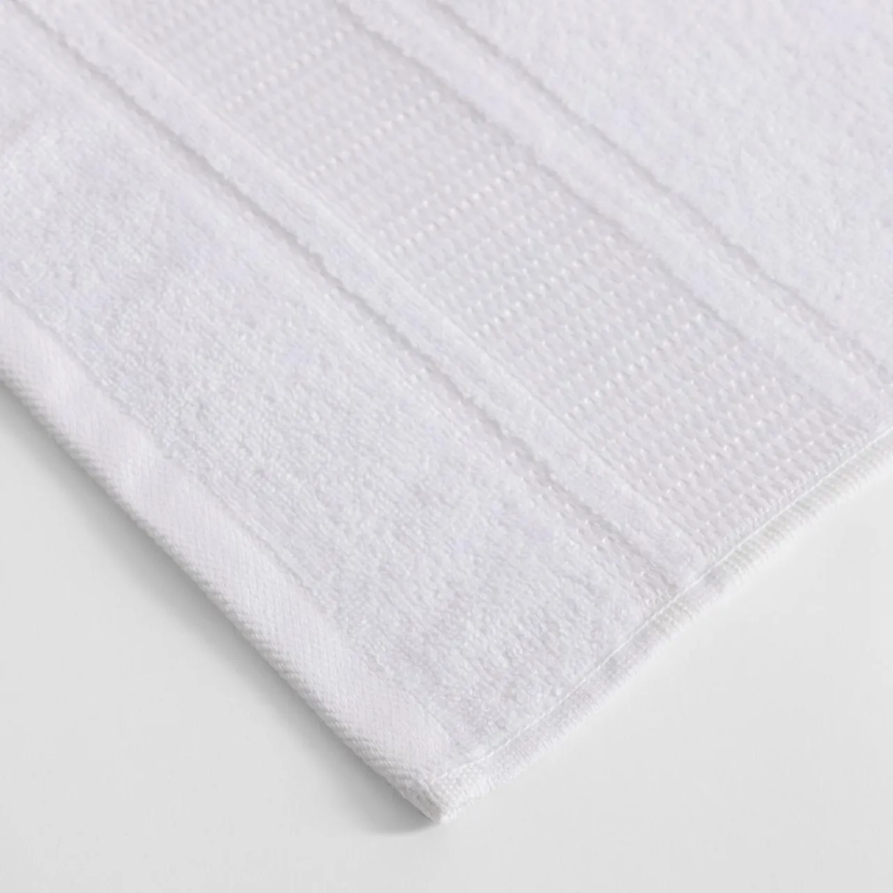 W minimalistycznej łazience powieś ręczniki z kolekcji ROYAL – biały materiał z ozdobną bordiurą doda wnętrzu świeżości.
