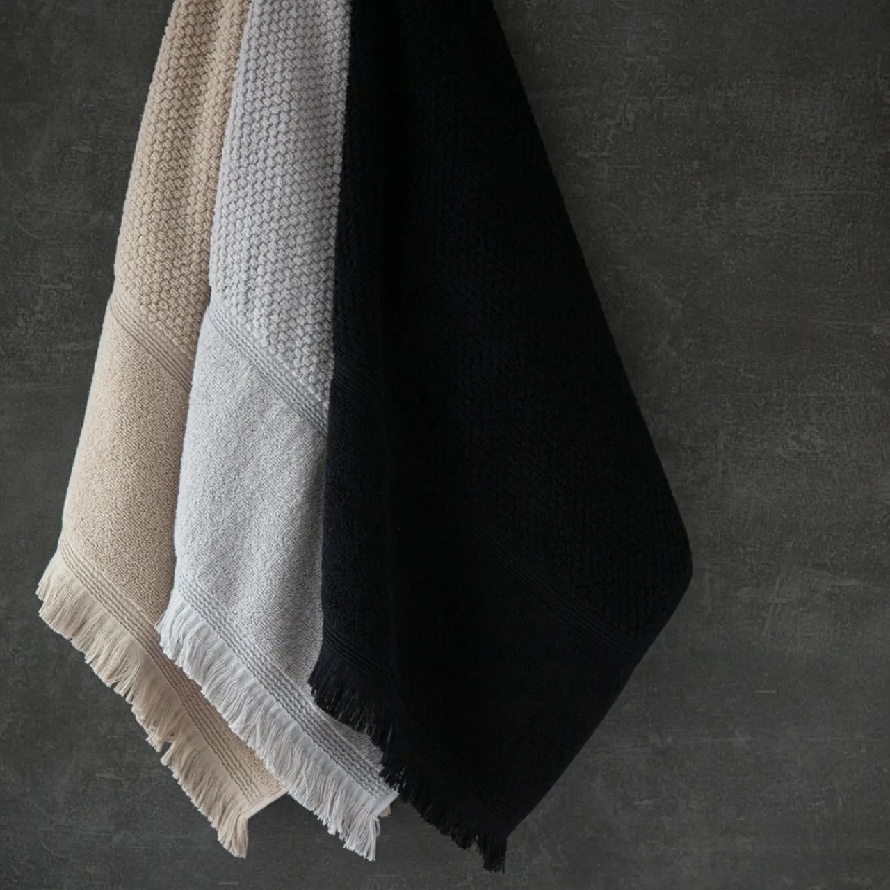 Ręczniki z kolekcji SANTORINI wyróżniają się miękką w dotyku, dekoracyjną fakturą. Posiada ozdobne frędzle, które dodadzą wnętrzu więcej przytulności.