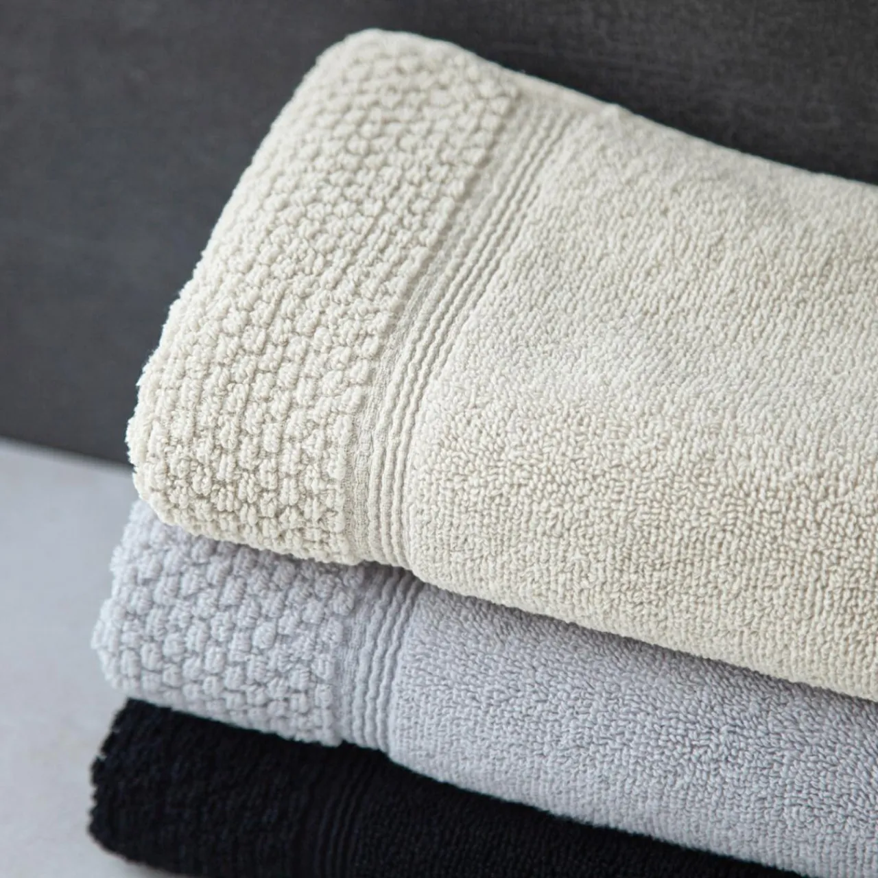 Ręczniki z kolekcji SANTORINI wyróżniają się dekoracyjną, miłą w dotyku fakturą. Chłonny ręcznik wykorzystasz po kąpieli, nad morzem lub na basenie.
