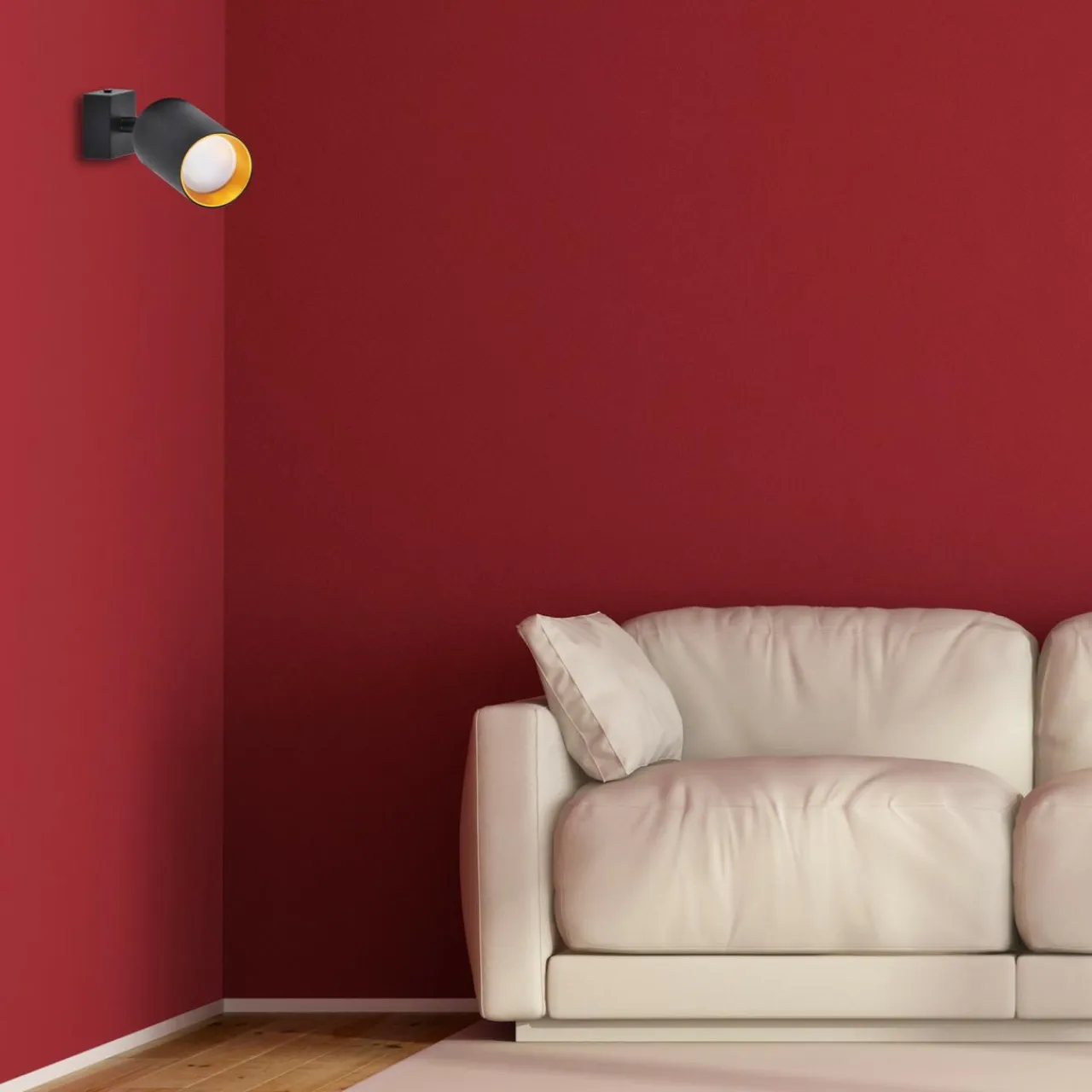 Podoba Ci się czarno-złota kolorystyka lampy? Jeśli wolisz bardziej stonowany dobór kolorów, mamy dla Ciebie rozwiązanie. Reflektor MARIBEL posiada dodatkowy pierścień dekoracyjny w czarnym kolorze. Wystarczy go wymienić i masz zupełnie inną wizualnie lampę.