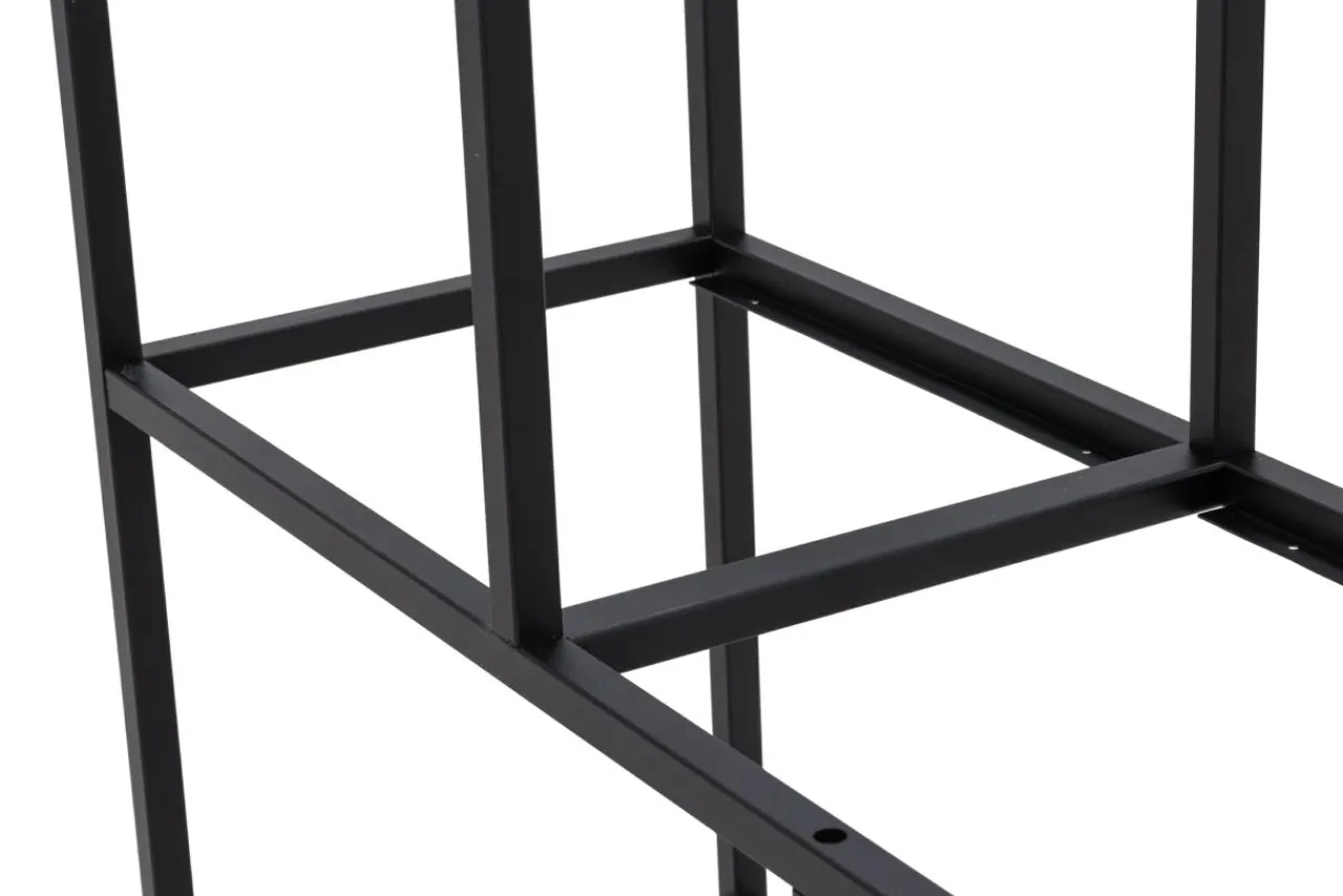 Mocne, wykonane z metalu i wykończone eleganckim czarnym kolorem ramy regału doskonale podkreślają kolorystykę kuchennego wnętrza.
