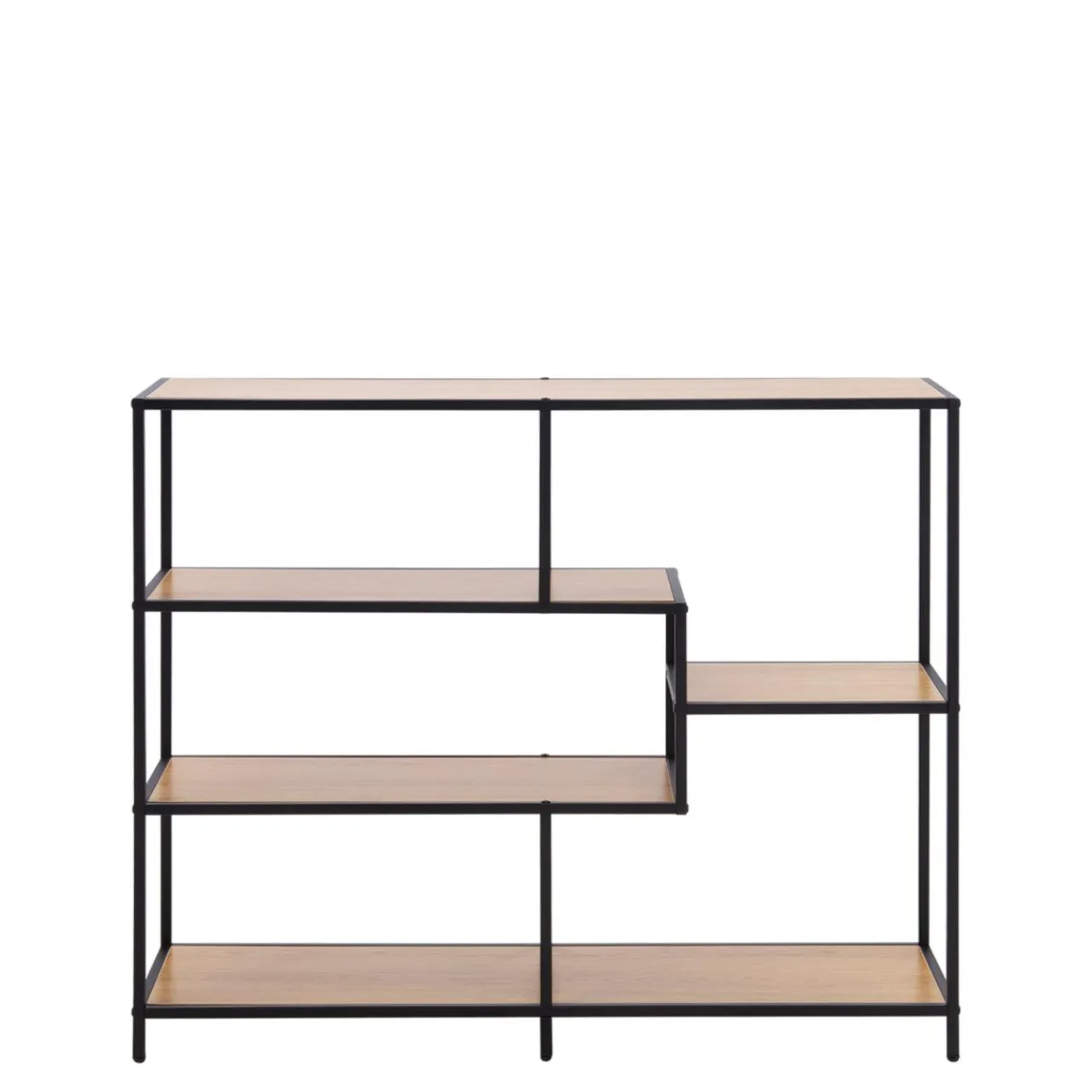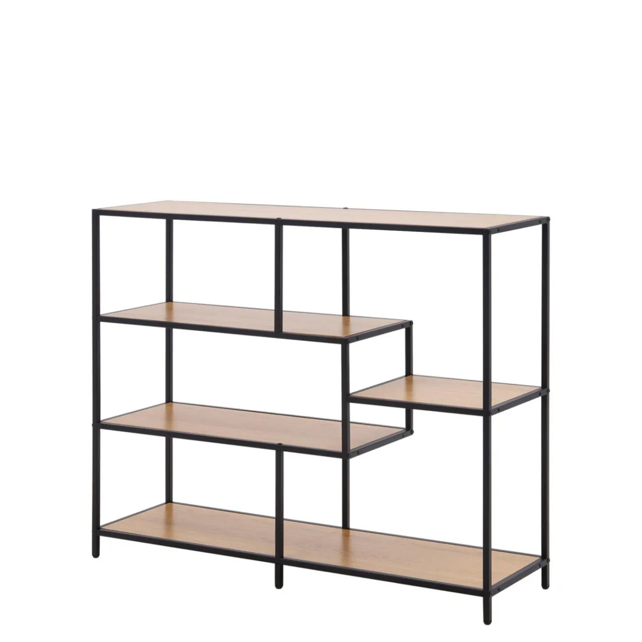Asymetryczne rozmieszczenie półek w meblu przyciąga wzrok i pozwala stworzyć modną aranżację.
