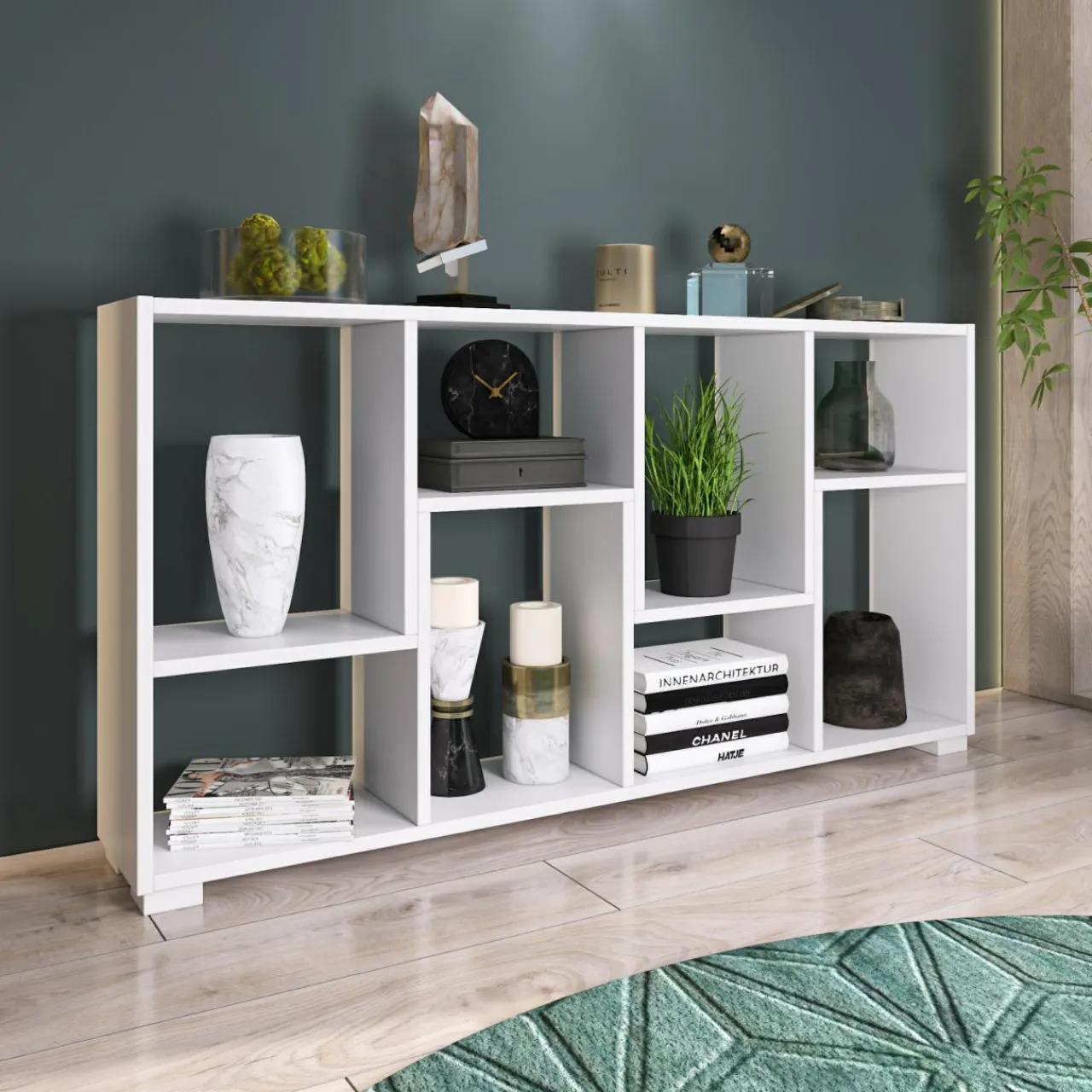 Szukasz nowoczesnego regału? Niesymetryczne rozmieszczenie półek w regale UNIWERSUM BIAŁYM przyciąga wzrok i pozwala stworzyć modną aranżację wnętrza.