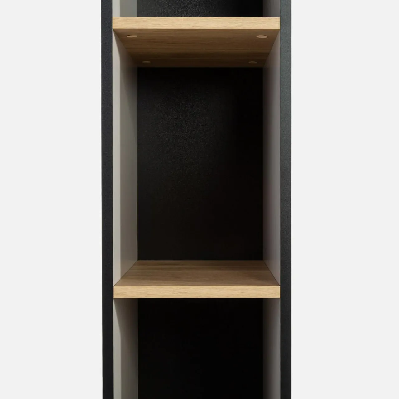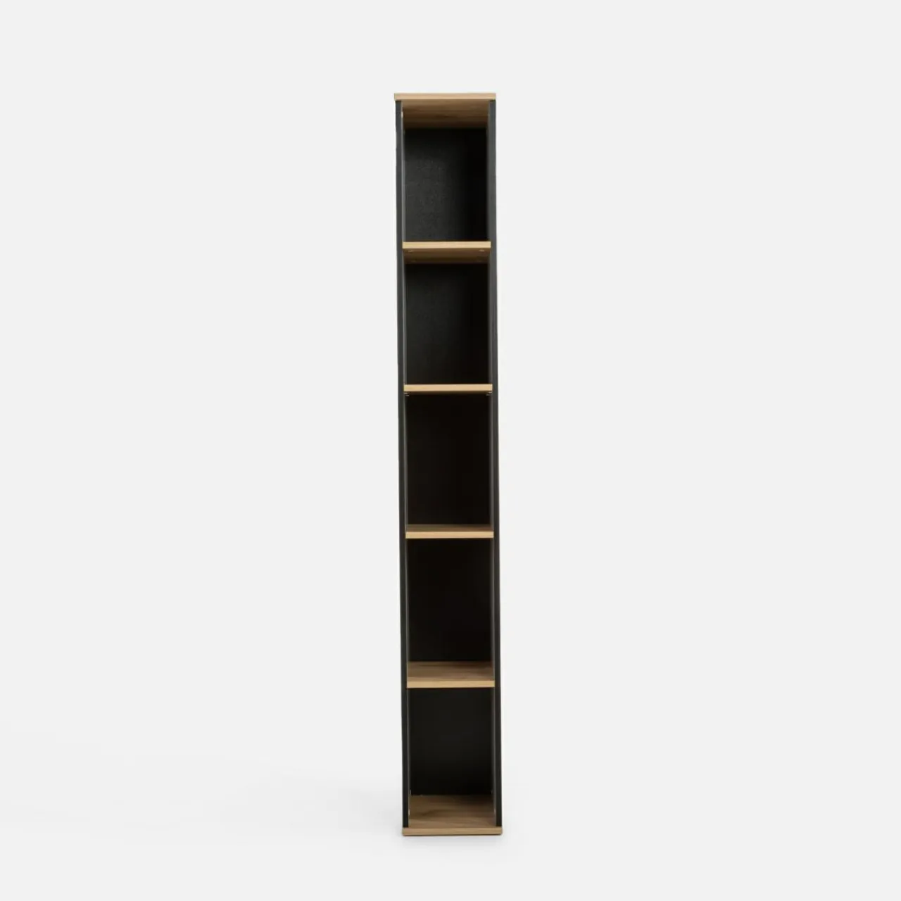Wąski regał MAZE wpisze się między meble lub uzupełnienie miejsca na mniejszej ścianie w pokoju.