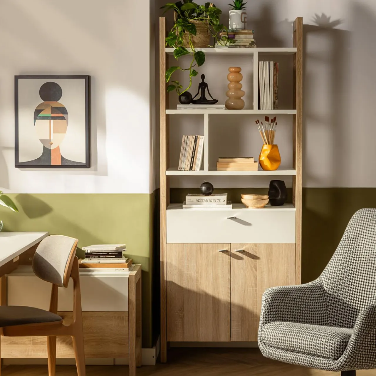 - W 6 otwartych wnękach ułożysz segregatory lub teczki z dokumentami. Nie zabraknie też miejsca na stylowy dodatek lub ramkę ze zdjęciem;