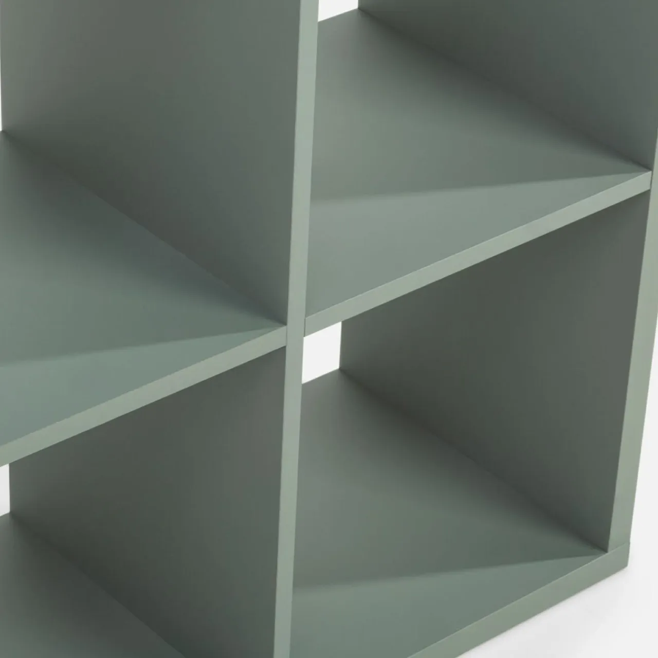Regał MAURO dzięki kwadratowej budowie pomieści się w wielu miejscach — na ścianie między pomieszczeniami, skośnych ścianach czy w kącie pokoju.