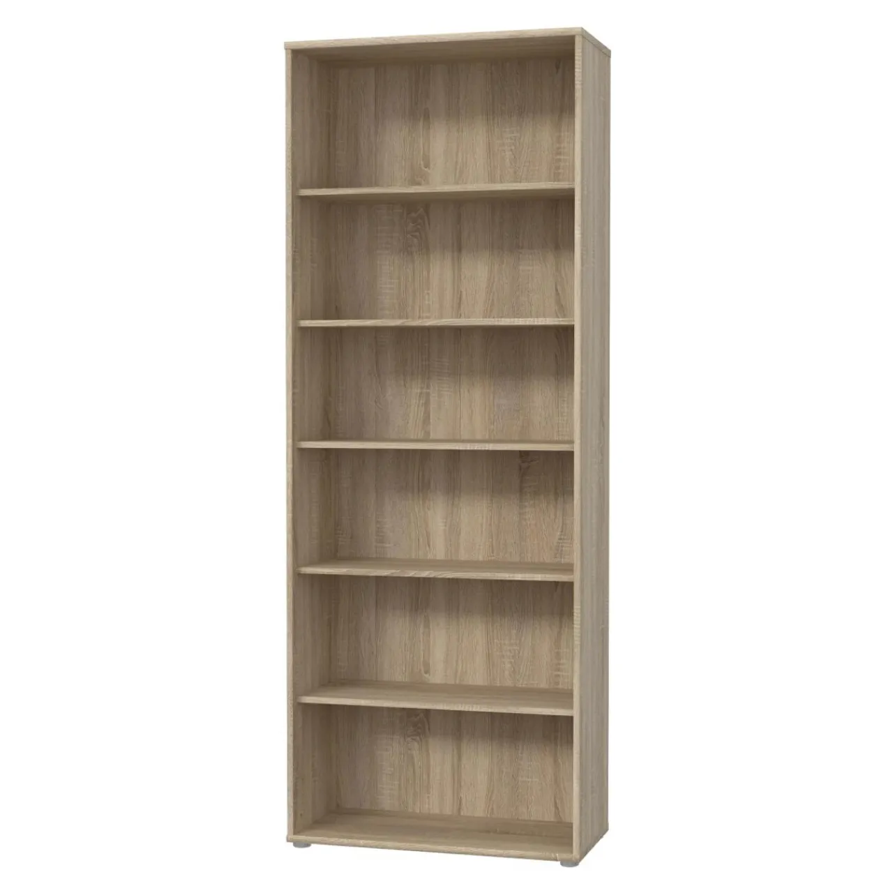 Regał TEMPRA 2 został wykonany z płyty meblowej, pokrytej folią. Całość jest utrzymana w jasnej tonacji kolorystycznej dąb sonoma.