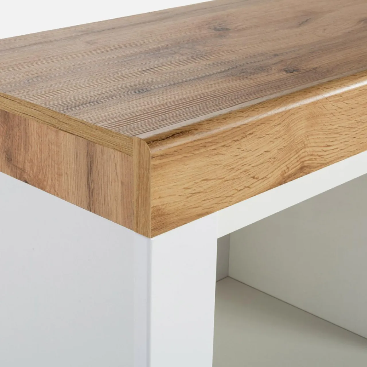- Elementy w odcieniu dębu wotan posiadają wyczuwalną pod palcami fakturę przypominającą naturalny surowiec. W połączeniu z ciepłym wybarwieniem tworzą przytulną atmosferę.