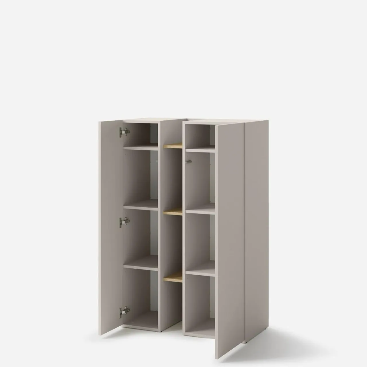 Otocz się ciepłem kaszmirowego beżu z kolekcji SIGMA. Gładkie fronty wprowadzą subtelną, spokojną i aurę, tworząc miejsce do codziennego wypoczynku. Elementy w kolorze truflowego brązu tworzą ciekawy, przełamujący akcent.