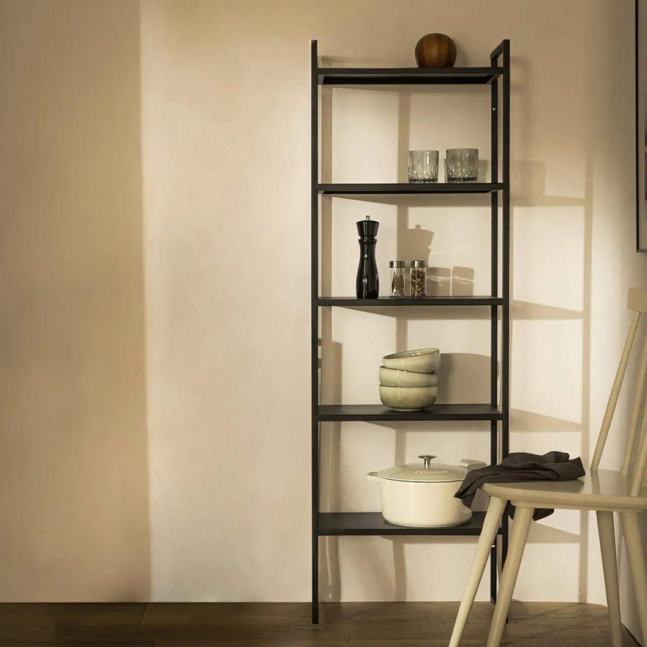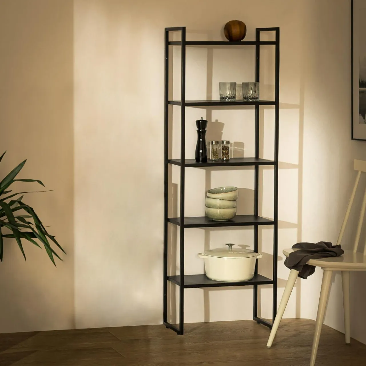Wykonane z metalu i wykończone eleganckim czarnym kolorem ramy regału doskonale podkreślają kolorystykę kuchennego wnętrza.