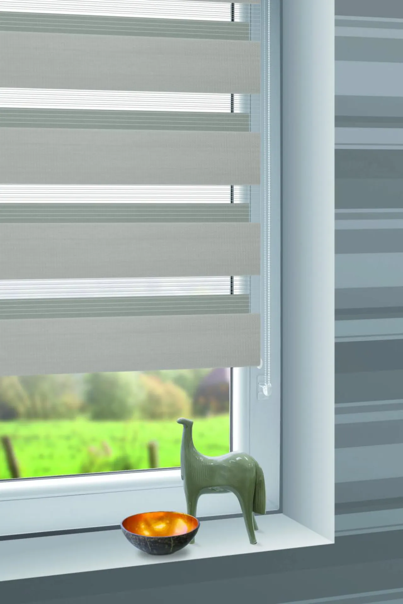 Stonowana i uniwersalna kolorystyka kolekcji rolet DAY&NIGHT ułatwia dopasowanie ich do wystroju wnętrza oraz koloru oprawy okiennej.
