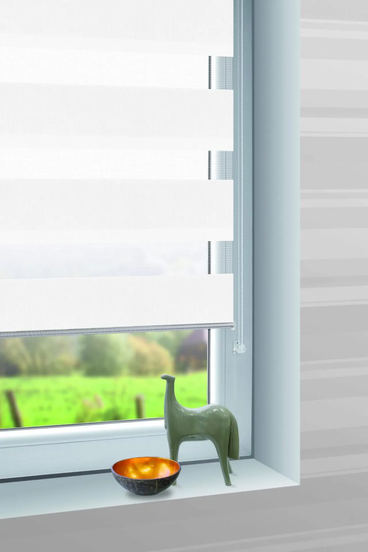 Stonowana i uniwersalna kolorystyka kolekcji rolet DAY&NIGHT ułatwia dopasowanie ich do wystroju wnętrza oraz koloru oprawy okiennej.