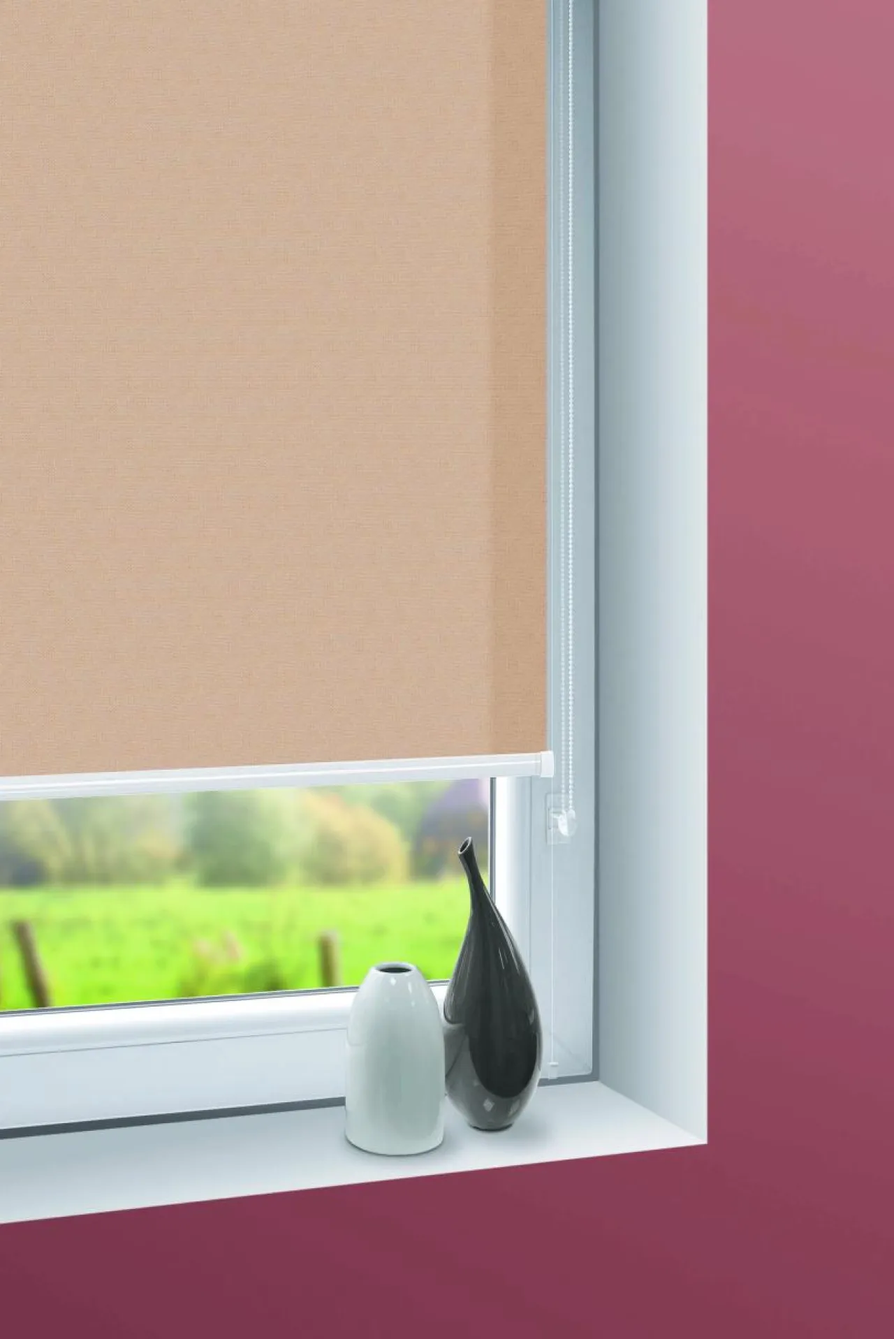 Dołączone do rolety żyłkowe prowadzenie boczne utrzymuje ją na swoim miejscu podczas otwierania lub uchylania okna.