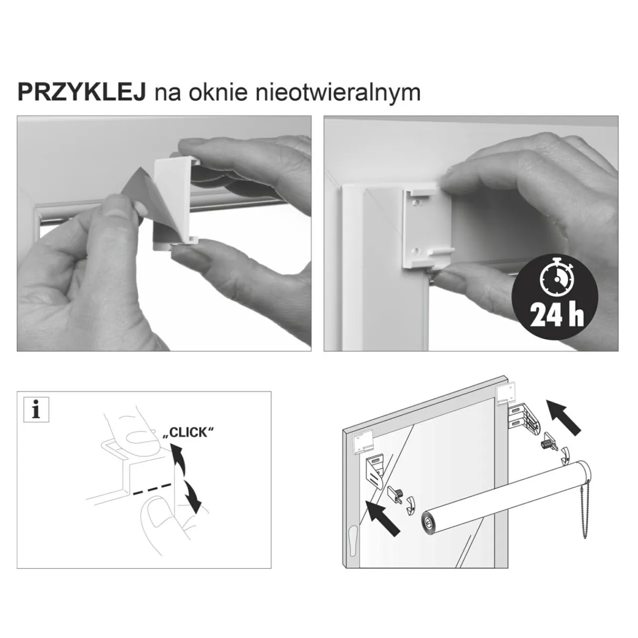 - montaż bez użycia narzędzi – roleta do zawieszenia lub przyklejenia na skrzydło okna;
