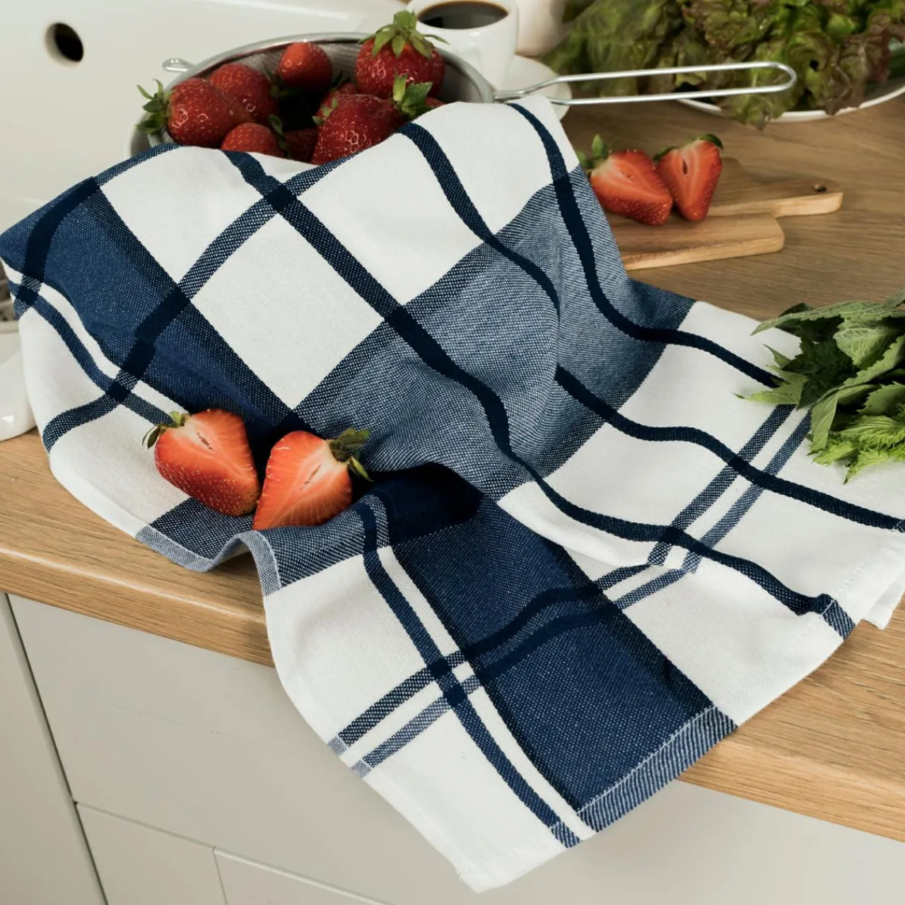 Ścierka KRATI wykonana w 100% z bawełny to doskonały wybór do każdej modnej kuchni — niebieskie minimalistyczne pasy podkreślą charakter wnętrza, dodatkowo go nie przytłaczając.