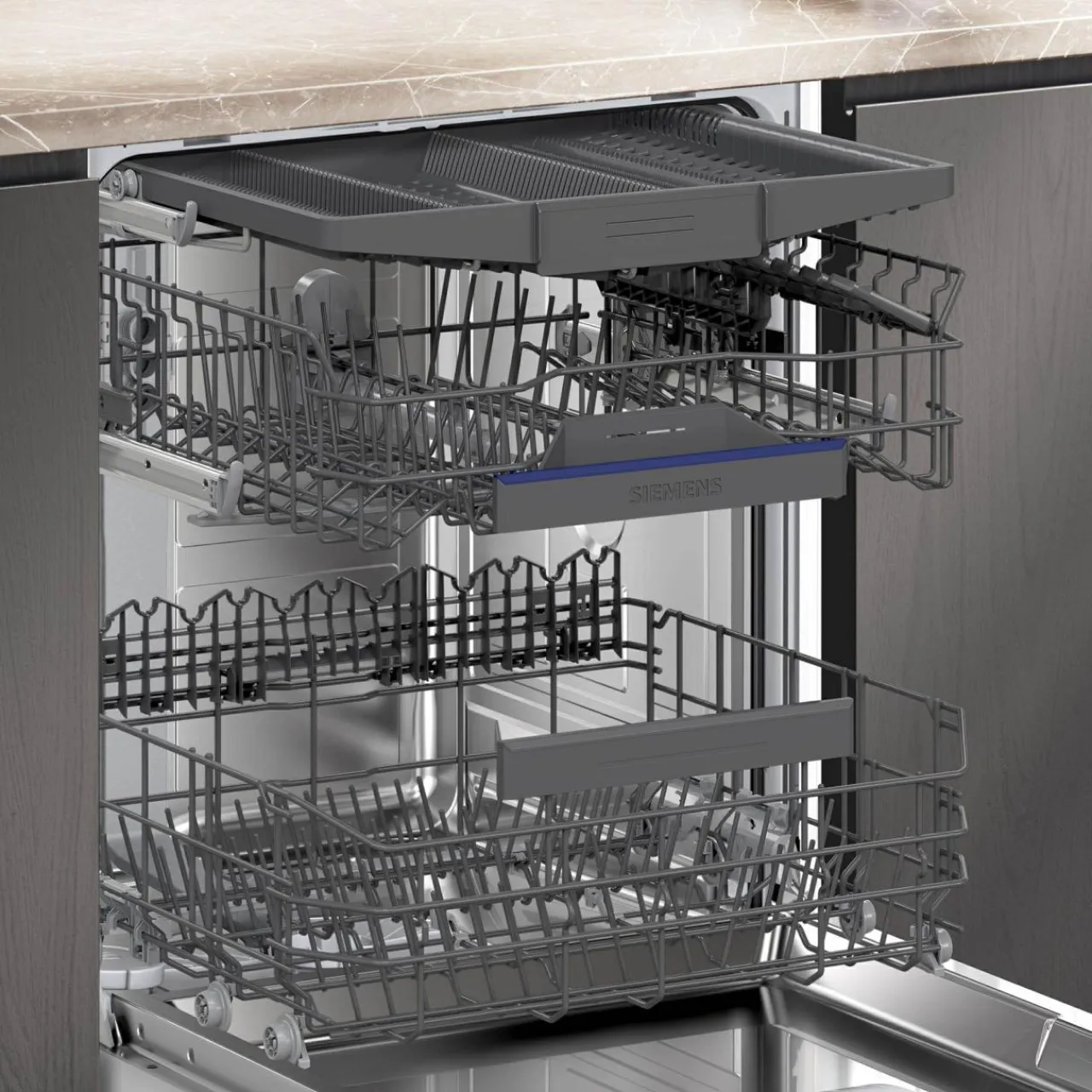 - Kosze flex: Regulacja wysokości (rackMatic), składane stojaki, półki na filiżanki, szuflada vario3.