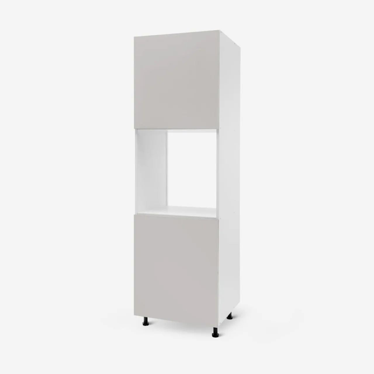 - Bryła szafki podzielona jest na 3 części – górną i dolną szafkę oraz miejsce na piekarnik – każda z szafek przedzielona jest 2 półkami.