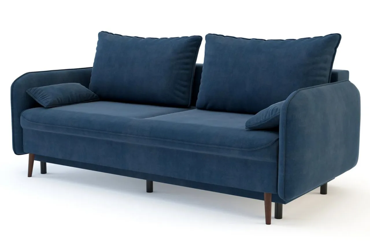 Sofa utrzymana jest w nowoczesnym stylu. Smukła linia w połączeniu z miękką, welurową tkaniną sprawiają, że możesz wkomponować ją w różne aranżacje wnętrz.