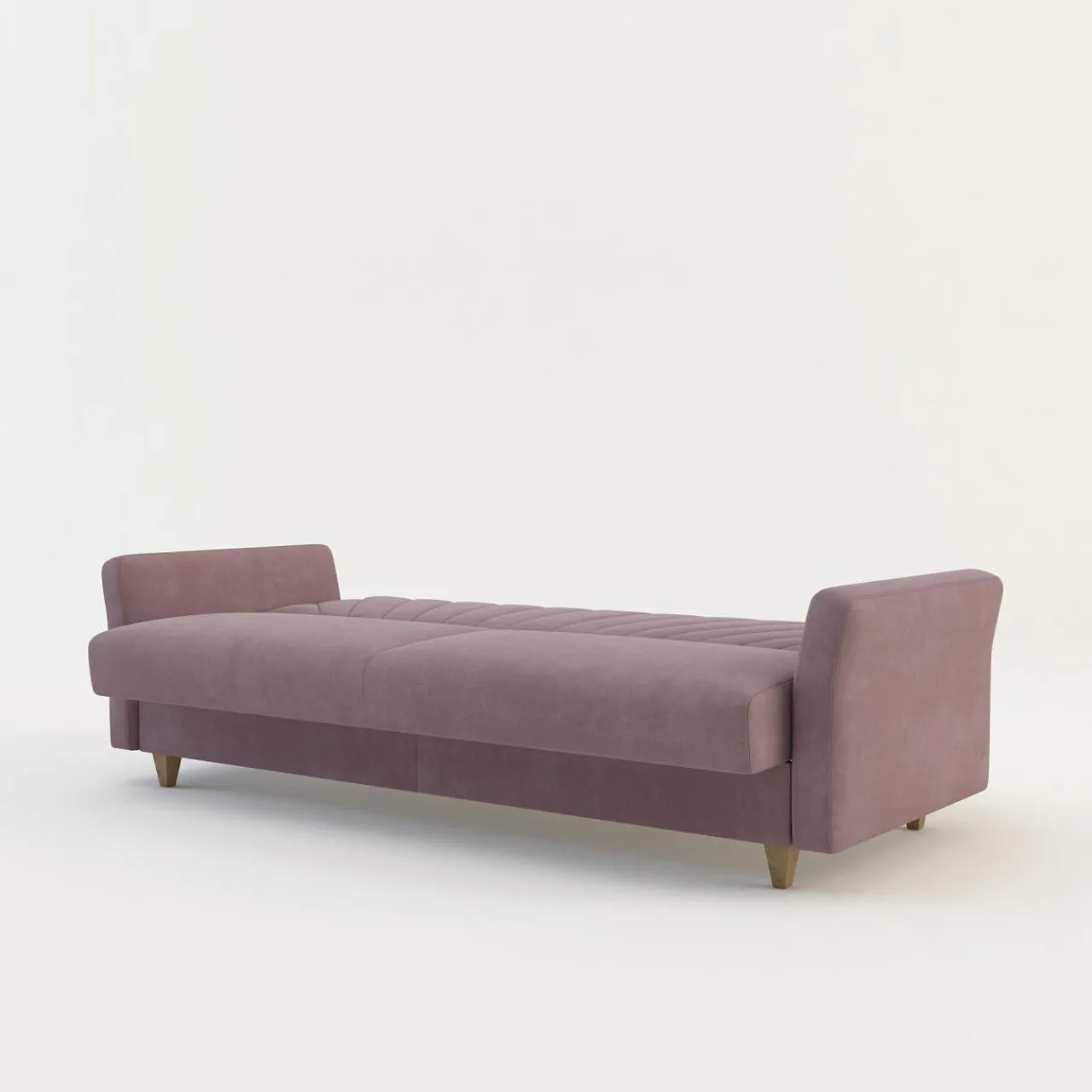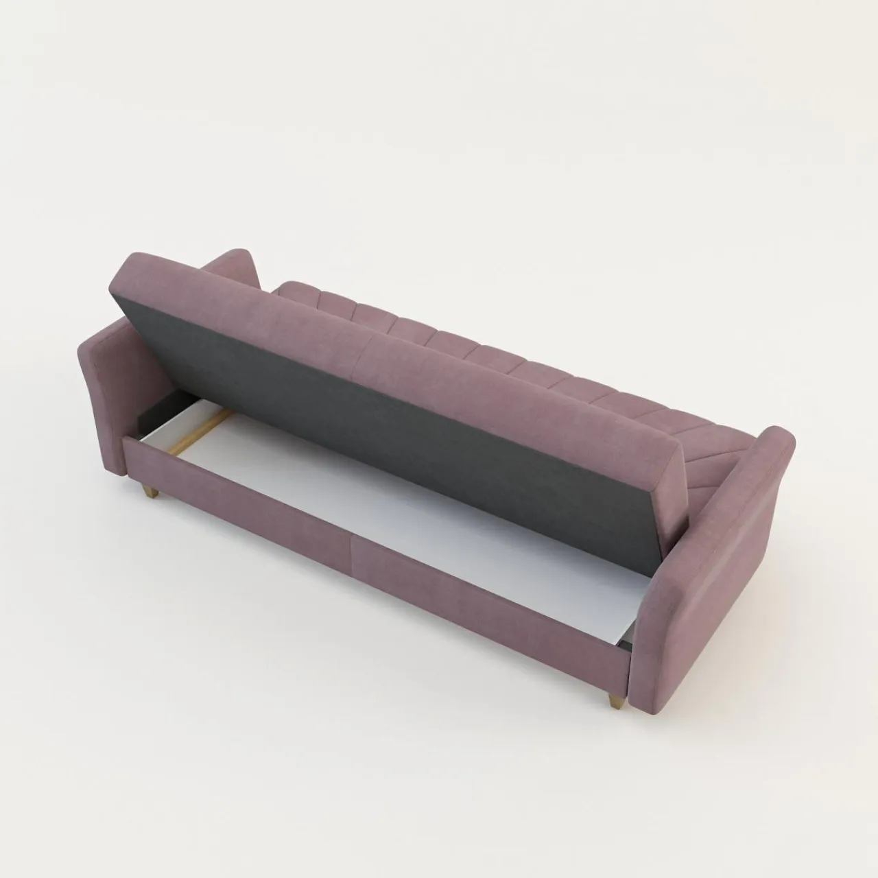 - Pod siedziskiem znajduje się pojemnik na pościel, który pomieści kołdrę i poduszkę.