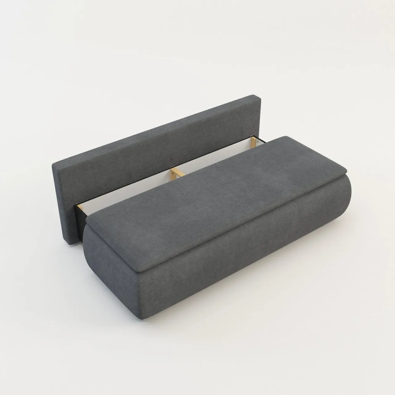 - Pojemnik pod siedziskiem to dodatkowa przestrzeń do przechowywania pościeli oraz innych domowych tekstyliów.