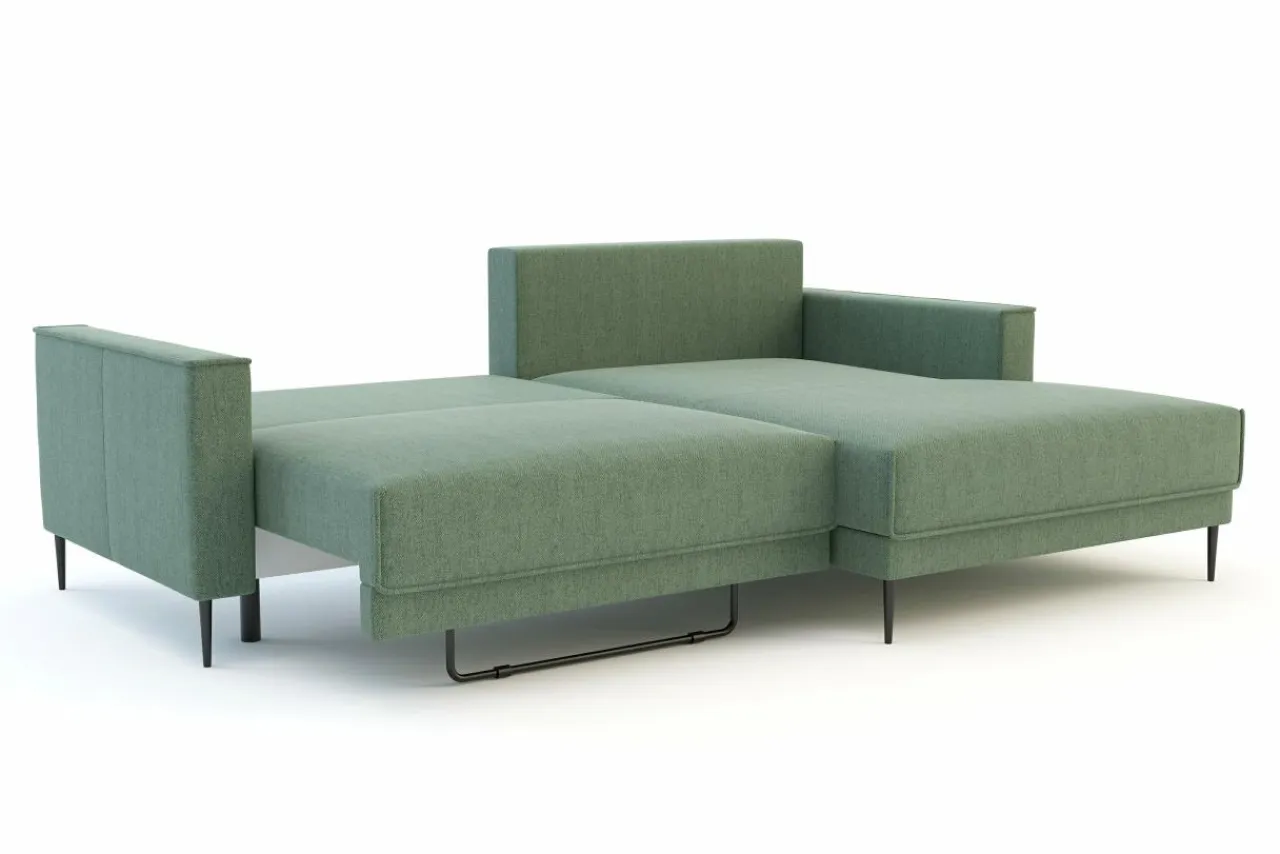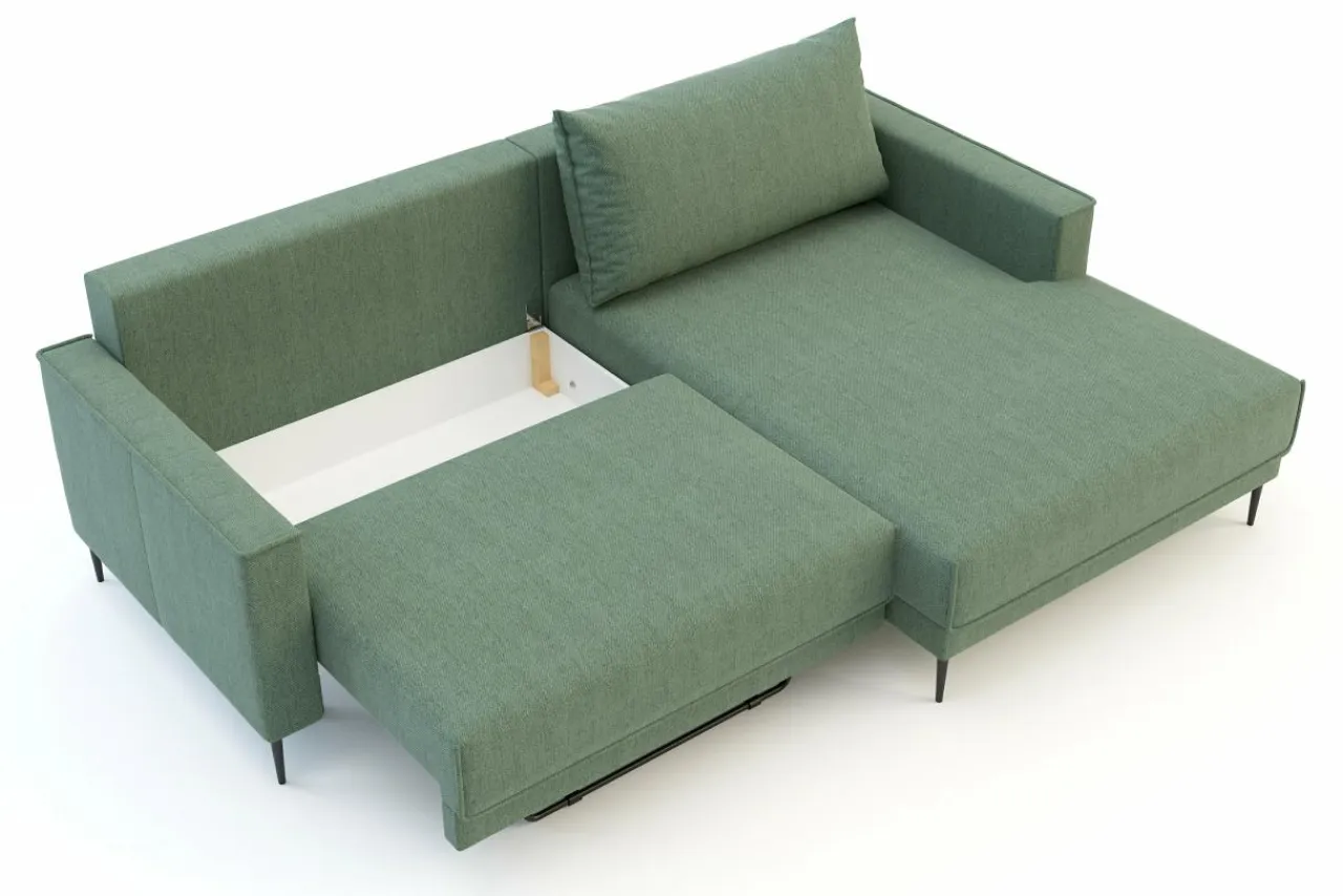 Pojemnik na pościel znajduje się bezpośrednio pod siedziskiem. Dostęp do niego uzyskasz w trakcie rozkładania narożnika.
