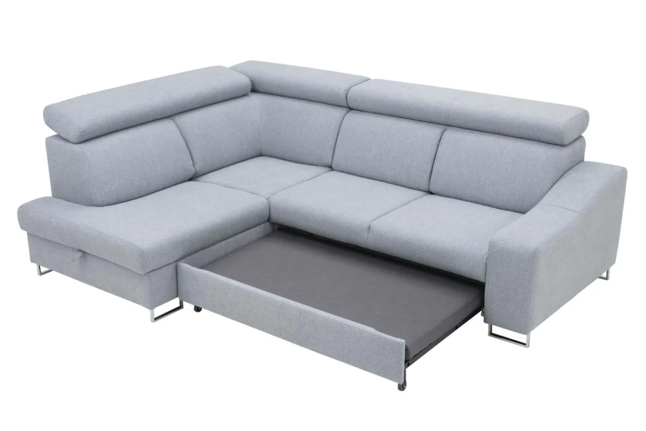 BRICO posiada możliwość rozłożenia oraz pojemnik na pościel. Jego regulowane zagłówki pozwalają na przyjęcie wygodnej pozycji podczas wypoczynku, a pianka i wbudowane sprężyny faliste dbają o komfort siedzenia.