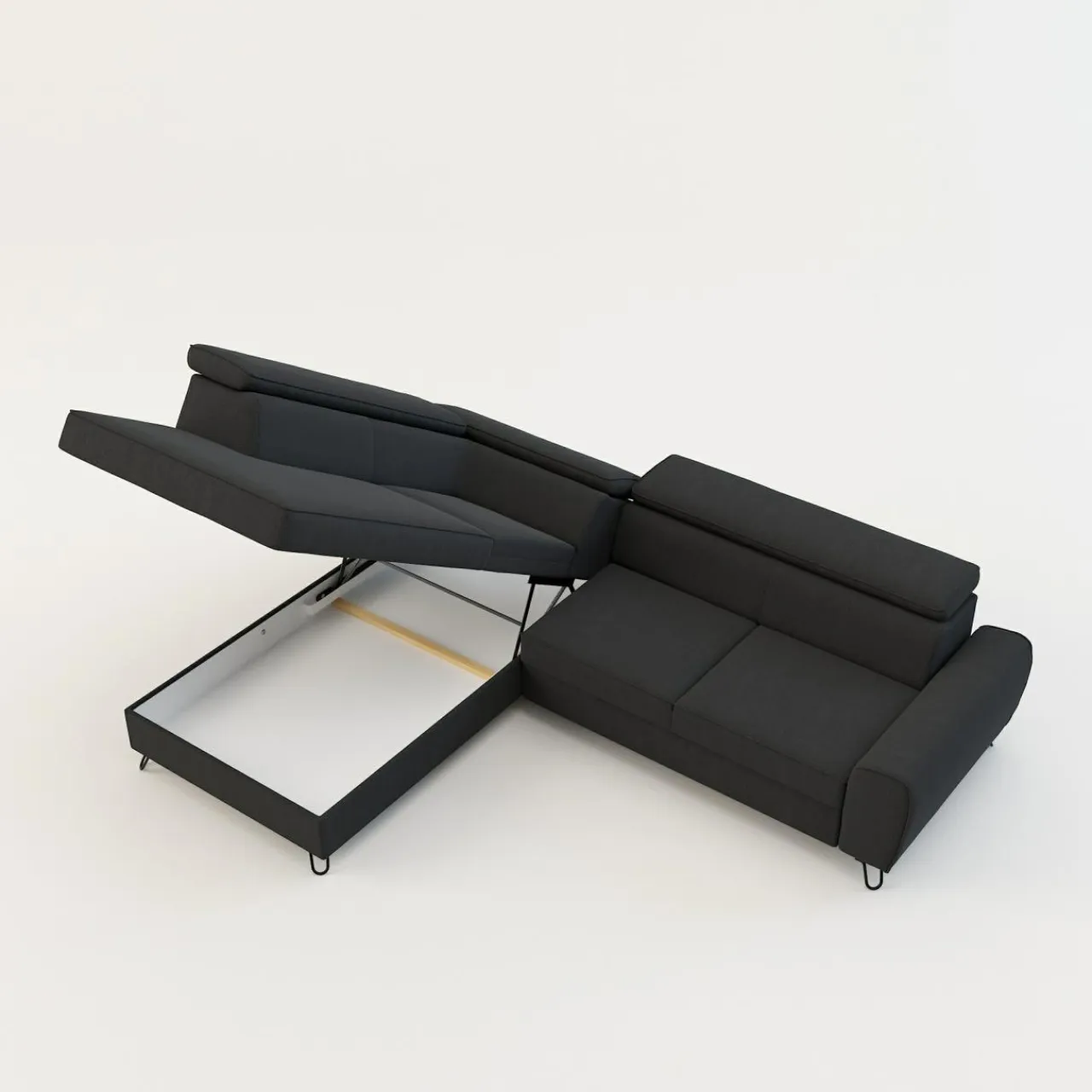 - Narożnik posiada 3 regulowane zagłówki na całej długości narożnika, dzięki czemu każdy z gości może usiąść równie komfortowo.