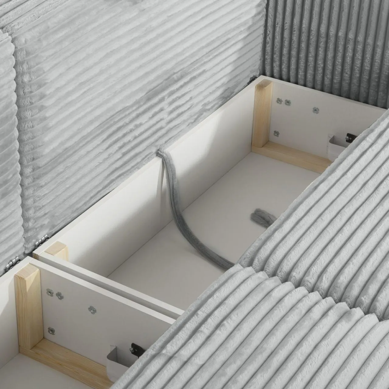 - Pościel lub koc do drzemki zmieścisz w pojemnym schowku pod siedziskiem.