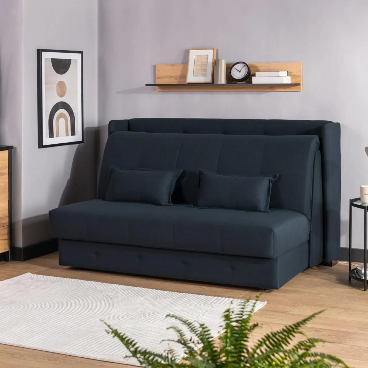Proponujesz gościom nocleg, więc rozkładasz sofę DERBY LITE. Waszym oczom ukazuje się to imponujące wezgłowie. To tylko rozłożona sofa, ale dla gości wygląda jak łóżko w eleganckiej sypialni.