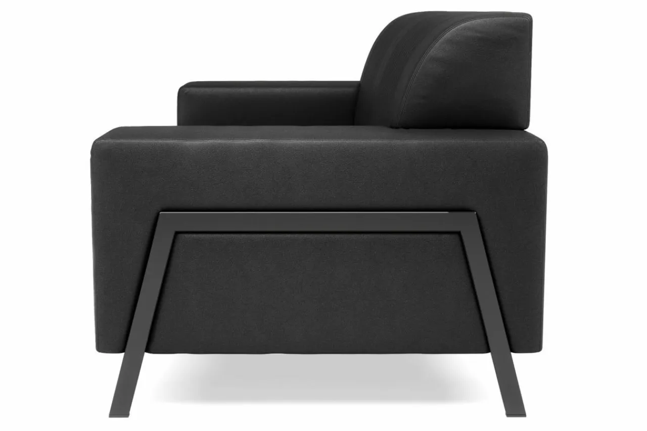 2-osobowa sofa skórzana czarna ZENIT + fotel wypoczynkowy
