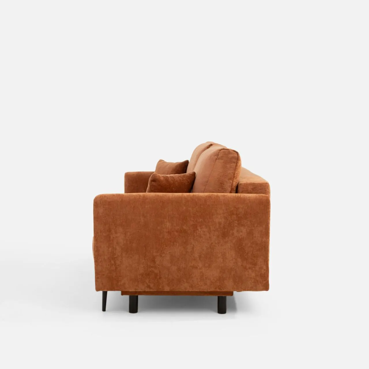 Sofa CAVA w ceglastym odcieniu wprowadzi do salonu domowe ciepło, w którym poranna kawa smakuje lepiej.