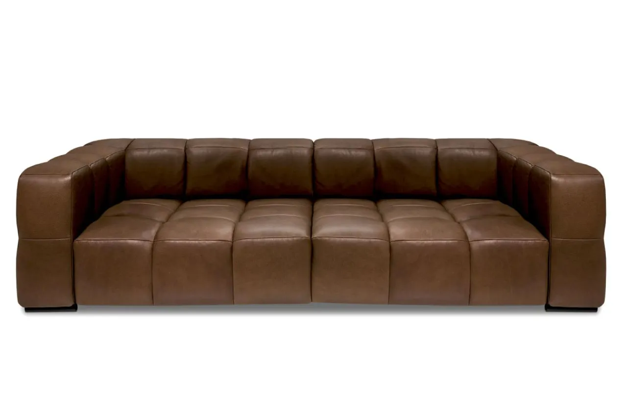 Sofa LUCY obita jest naturalną skórą BUENOS AIRES. Widoczne dwa odcienie przypominają mieszankę ziemi, a delikatnie wyczuwalne nierówności podkreślają klasę wykonania mebla.