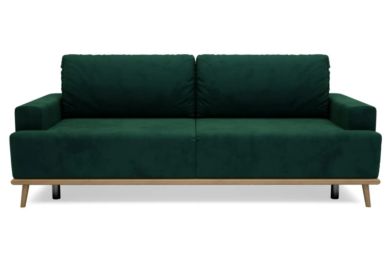 Ciemnozielona sofa będzie świetnie prezentować się na tle białej lub jasnoszarej ściany, ożywi pomieszczenie i wprowadzi do niego nowoczesny klimat.