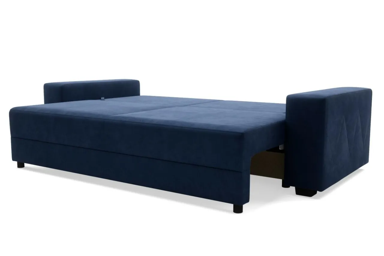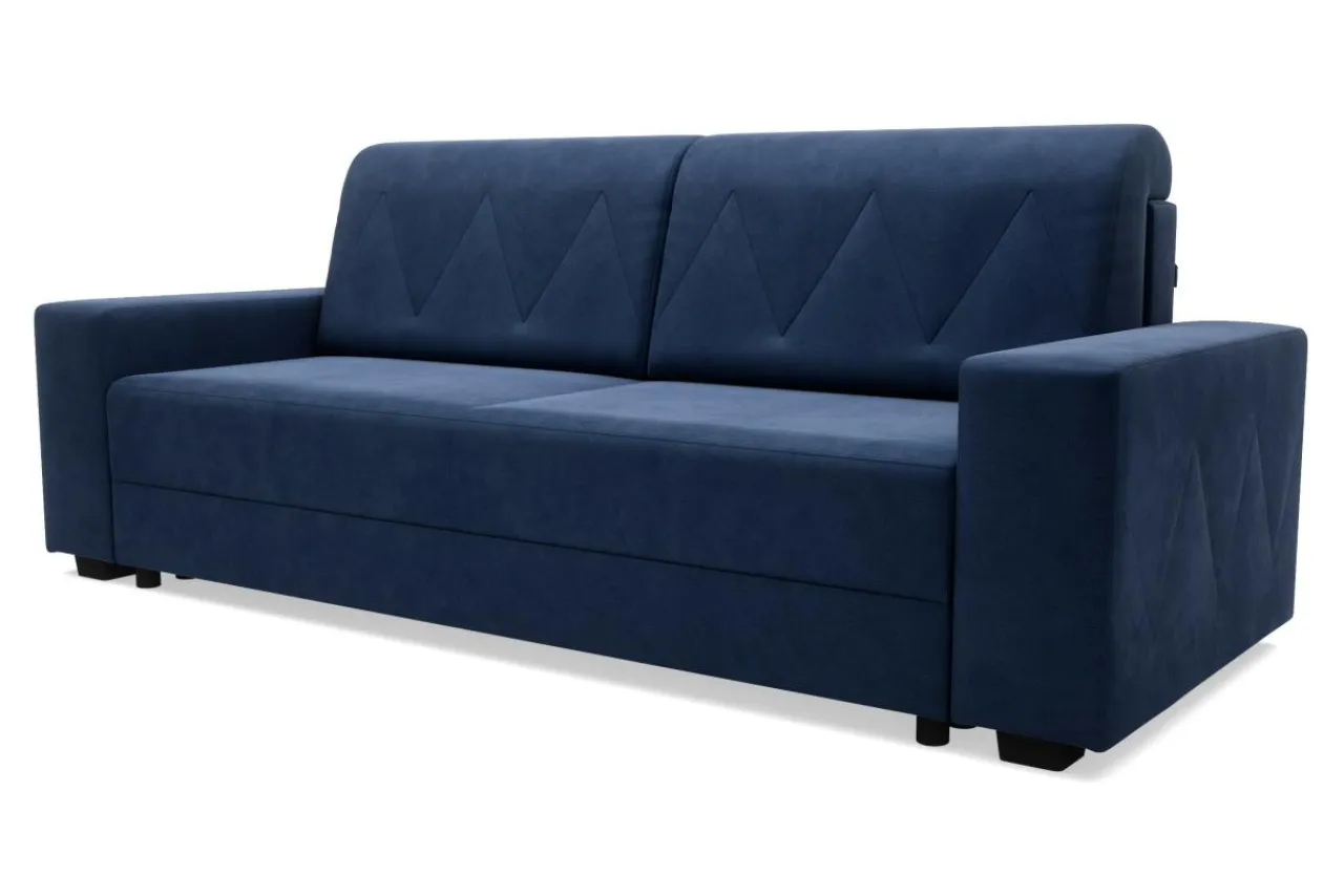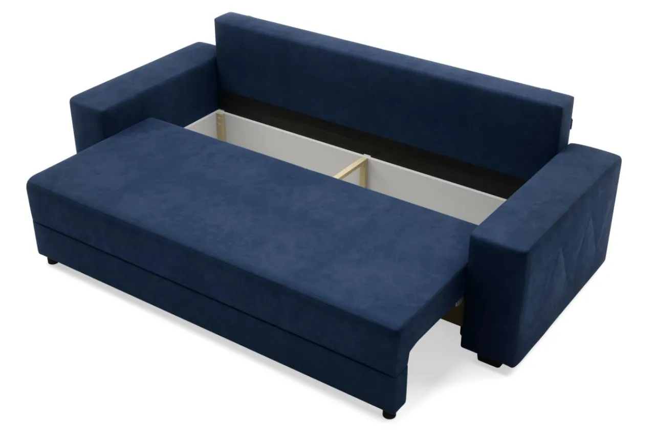 Sofa jest tapicerowana miękką i miłą w dotyku tkaniną welwetową FANCY w modnym odcieniu granatu. Zastosowana tkanina jest pokryta specjalną powłoką hydrofobową, która utrudnia wchłanianie rozlanych płynów pozwalając na ich szybkie usunięcie z powierzchni.