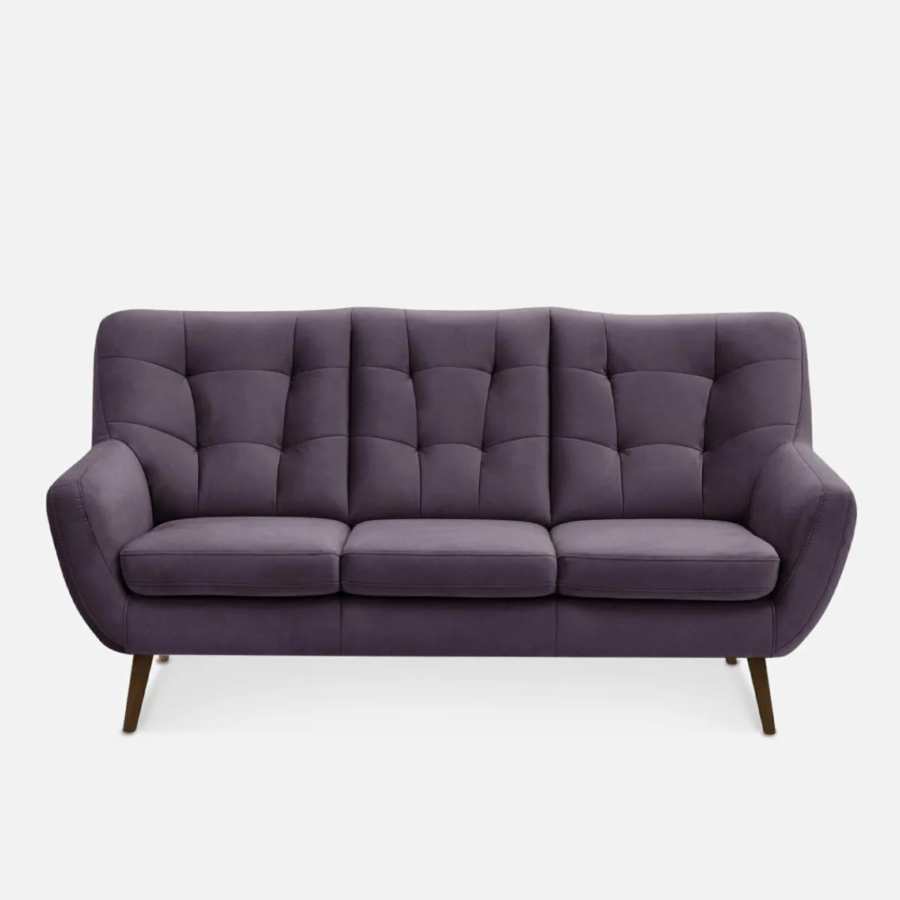 Sofa posiada unikatowy kolor: z pozoru brązowy pod wpływem światła uwypukla fioletowy odcień.