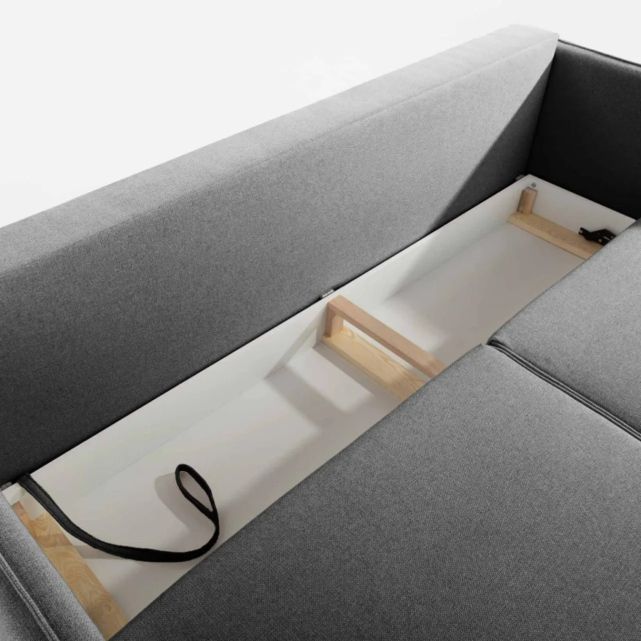 - Do pojemnika pod siedziskiem schowasz pościel, koce i inne domowe tekstylia. Dostęp do niego uzyskasz podczas rozkładania sofy.
