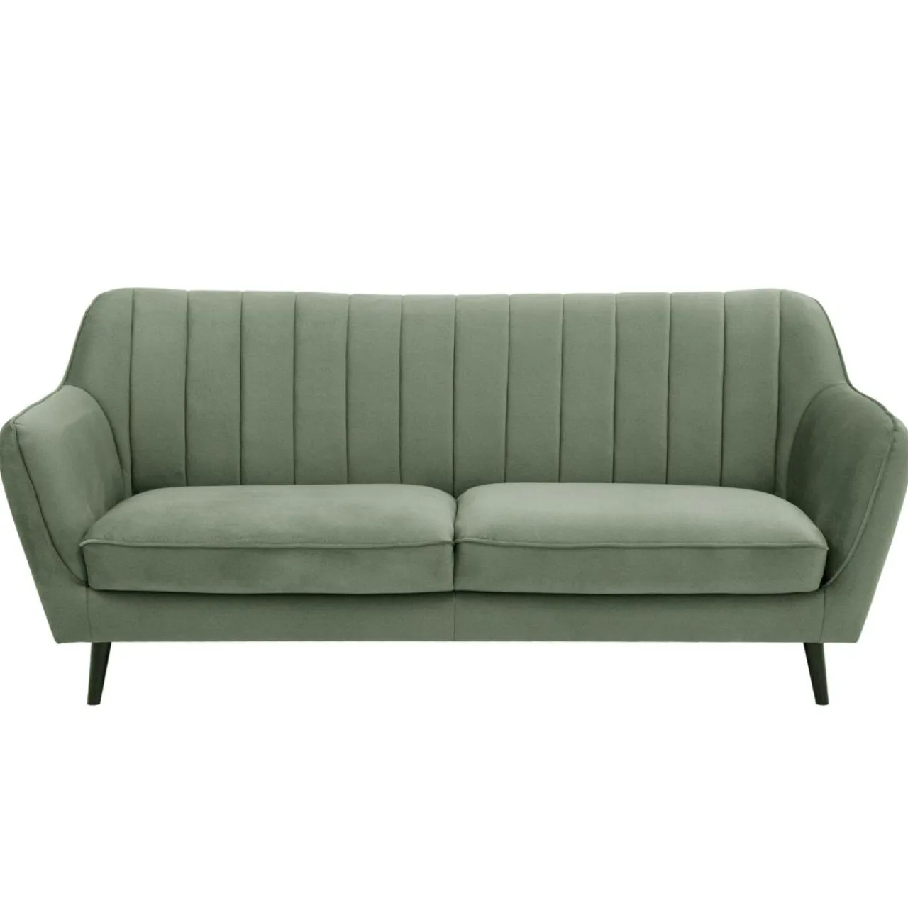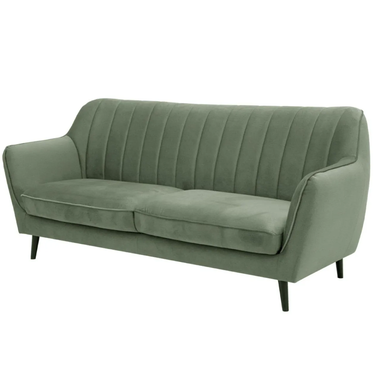 Miękka pluszowa tkanina w oryginalnym odcieniu zieleni i pionowe przeszycia dopełniają całości oraz sprawiają, że sofa LAHTI podkreśla wyjątkowość niewielkiego salonu lub pokoju dziennego, tworząc przyjemną strefę wypoczynkową.