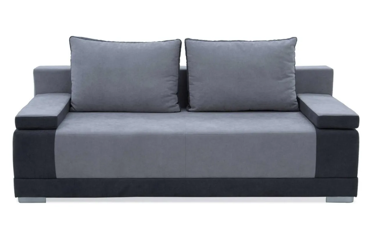 Dwukolorowa sofa w jasnym i ciemnym odcieniu szarości zwiększa możliwości aranżacyjne i sprawia, że mebel prezentuje się znacznie ciekawiej niż w jednolitym kolorze. A jeśli odwiedzą nas goście możemy wykorzystać wbudowaną funkcję spania z mechanizmem ułatwiającym rozkładanie i pojemnikiem znajdującym się pod siedziskiem.